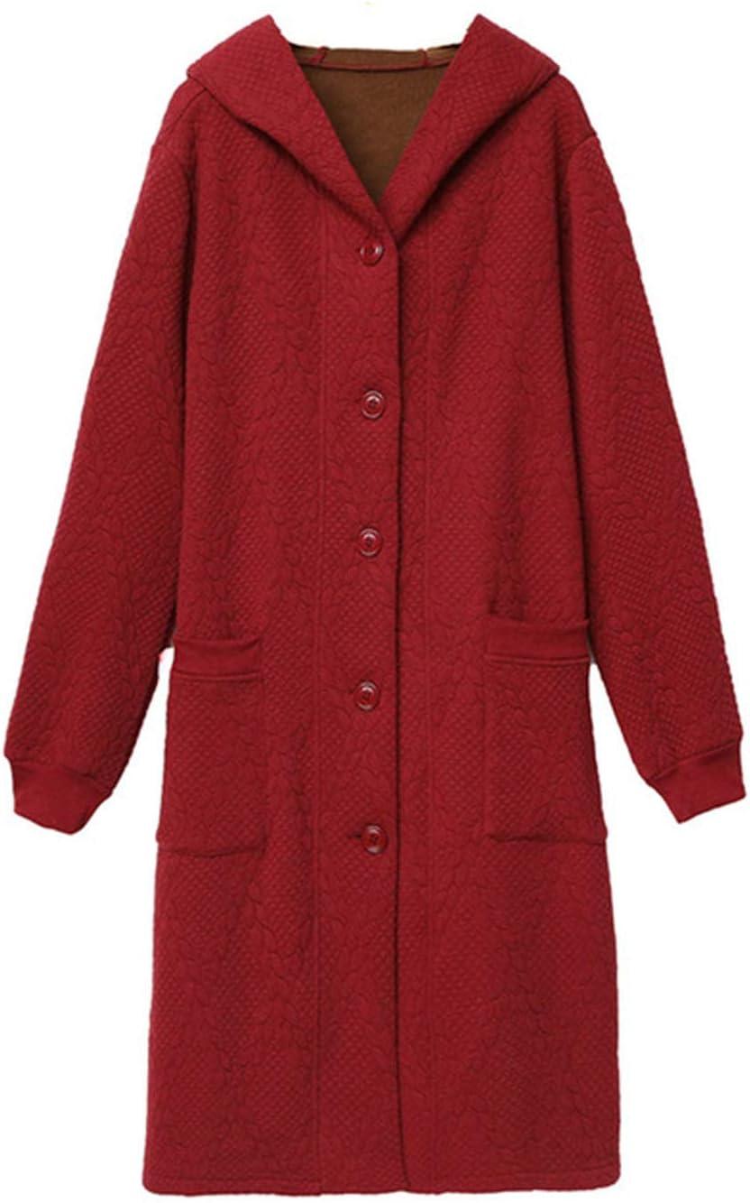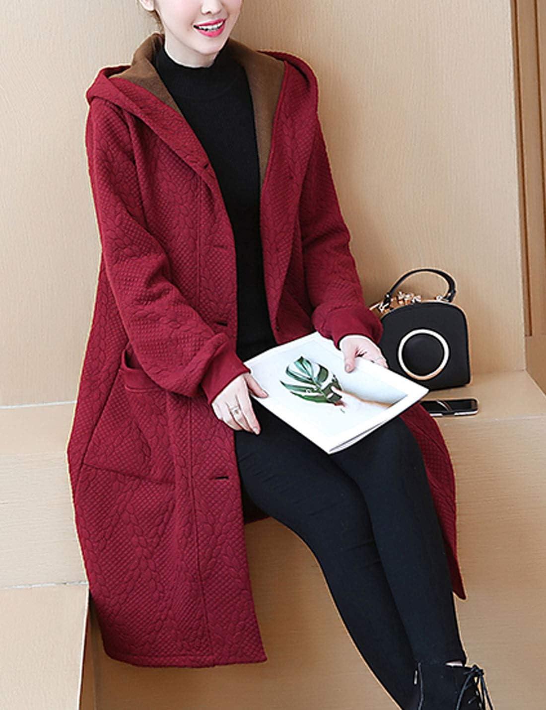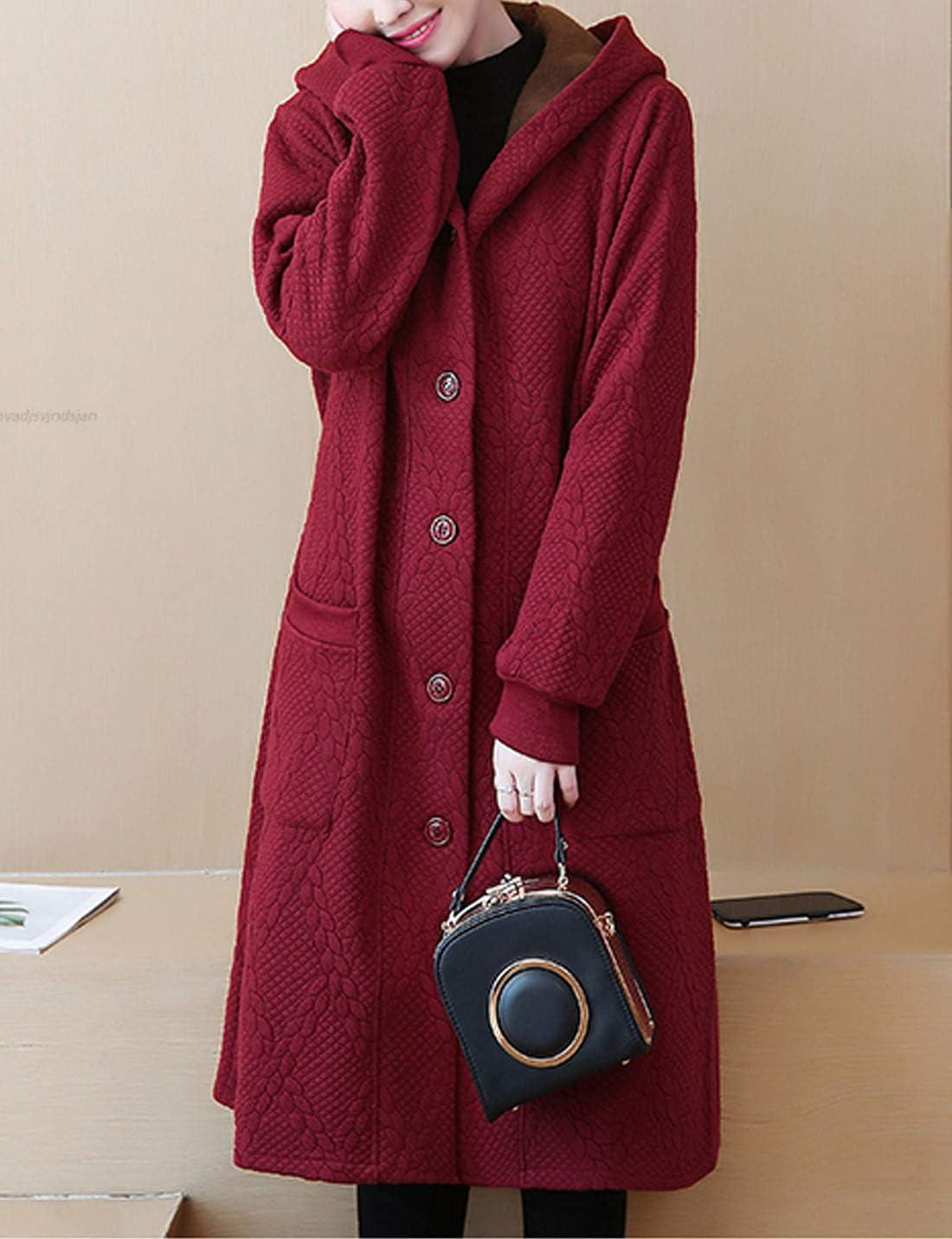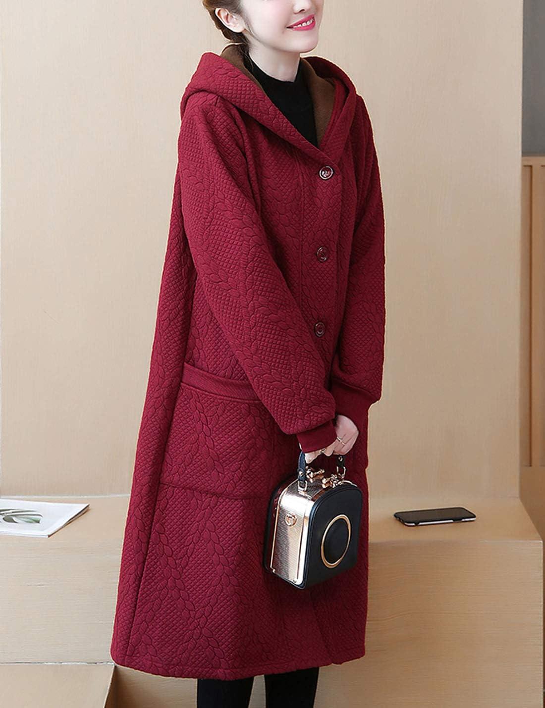 Flygo Women’s Thicken Hooded Puffer Jacket Loose Fit Mid Length Parka Coat Cardigan(Wine Red)