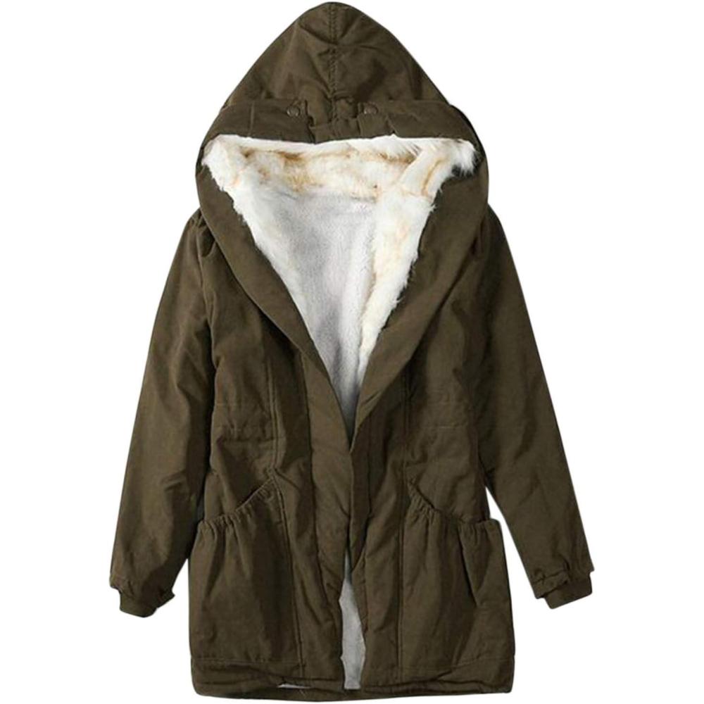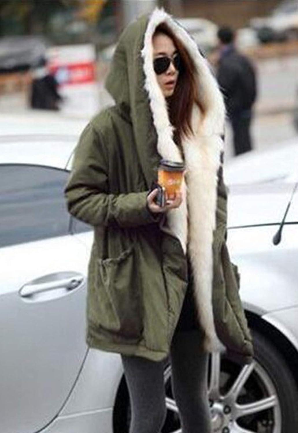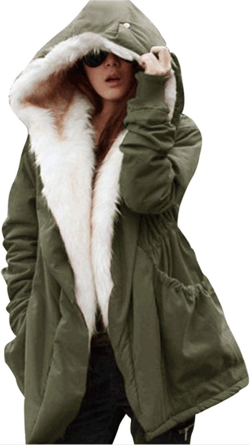 Flygo Women’s Thicken Sherpa Fur Lined Hooded Long Anorak Parka Jacket Coat(Army Green)