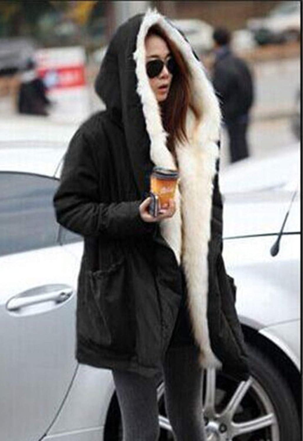 Flygo Women’s Thicken Sherpa Fur Lined Hooded Long Anorak Parka Jacket Coat(Black)