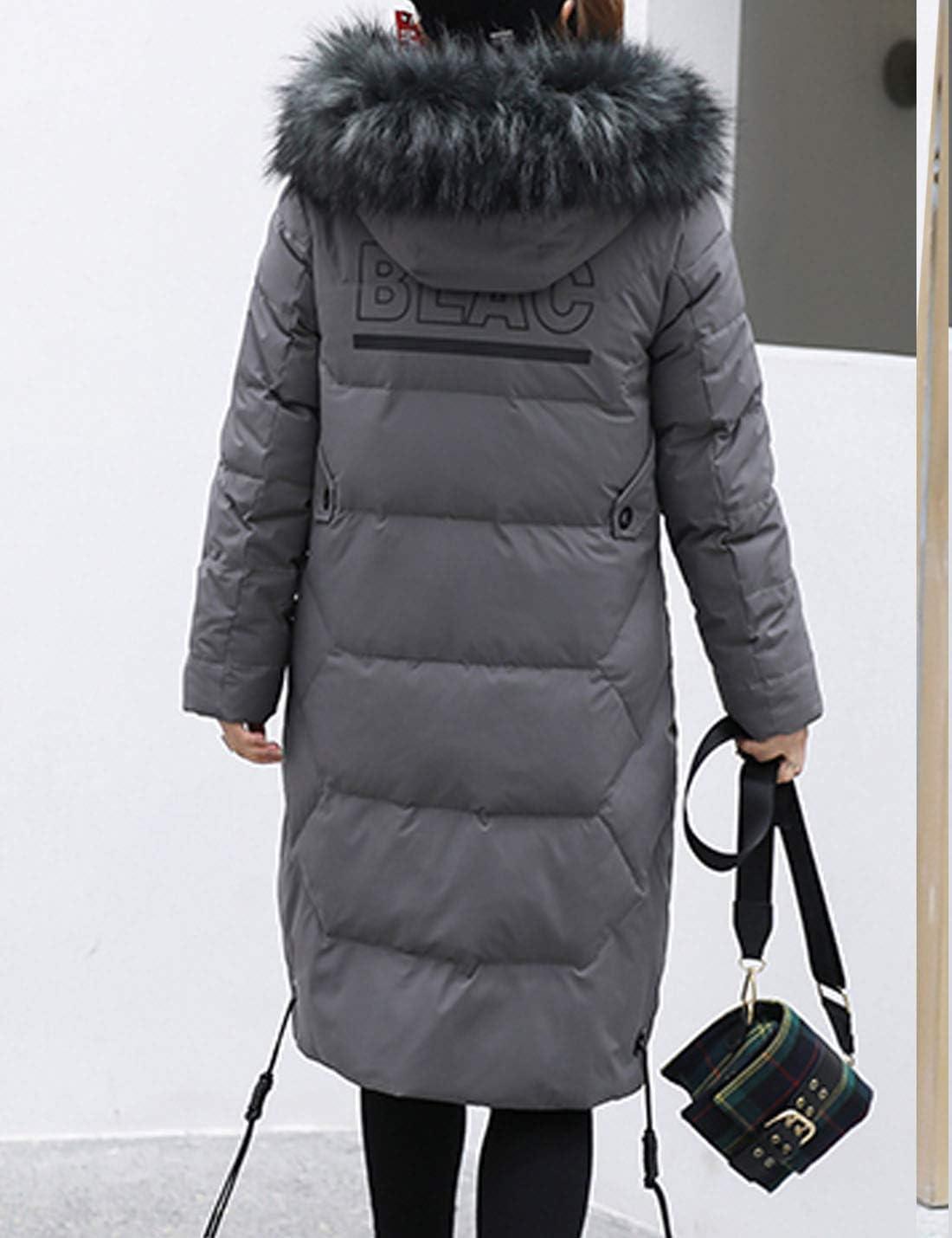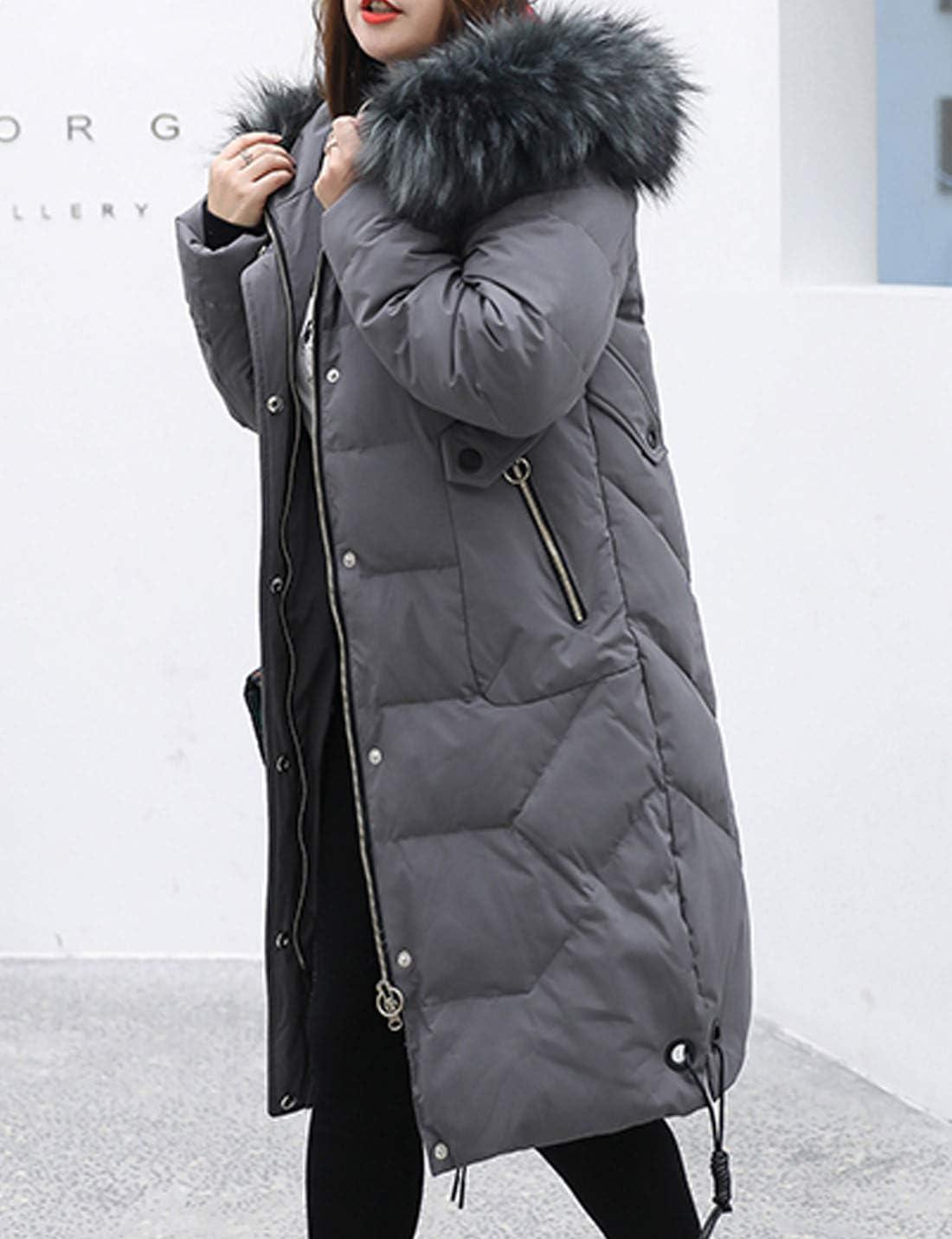 Flygo Women’s Thickened Removable Fur Hooded Long Down Jacket Parka Puffer Coat 3XL(Grey)