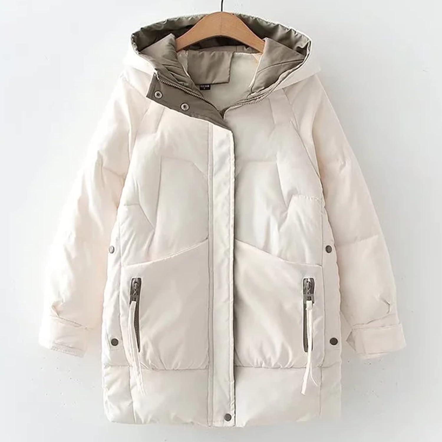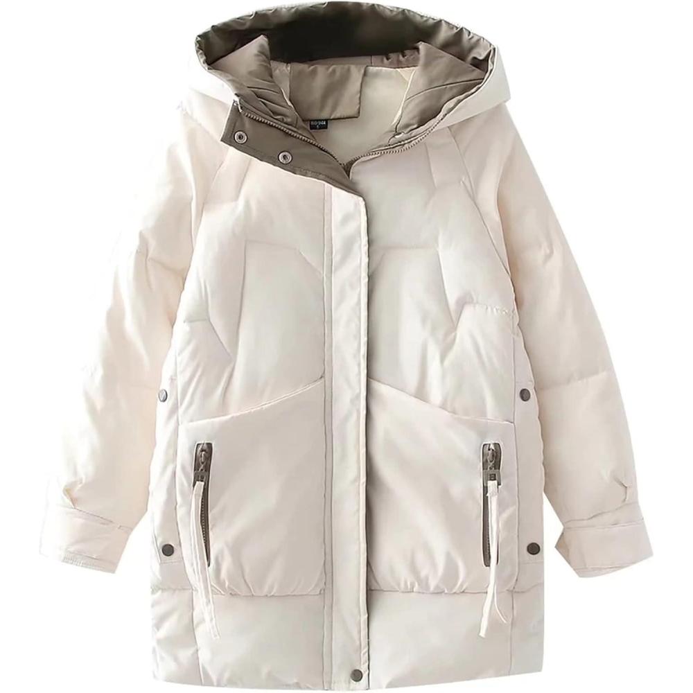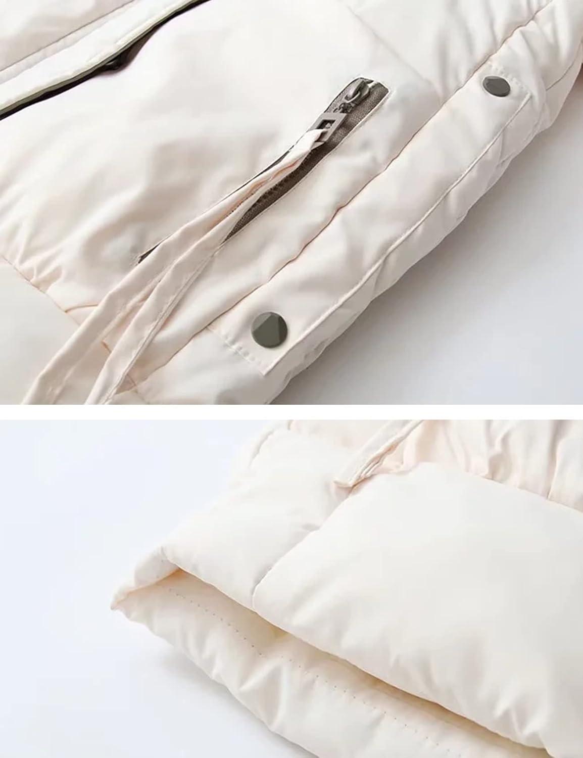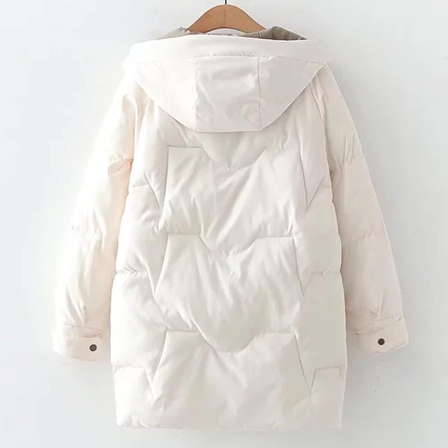 Flygo Women’s Thickened Winter Full Zip Hooded Puffer Parka Coat Down Jacket(White)