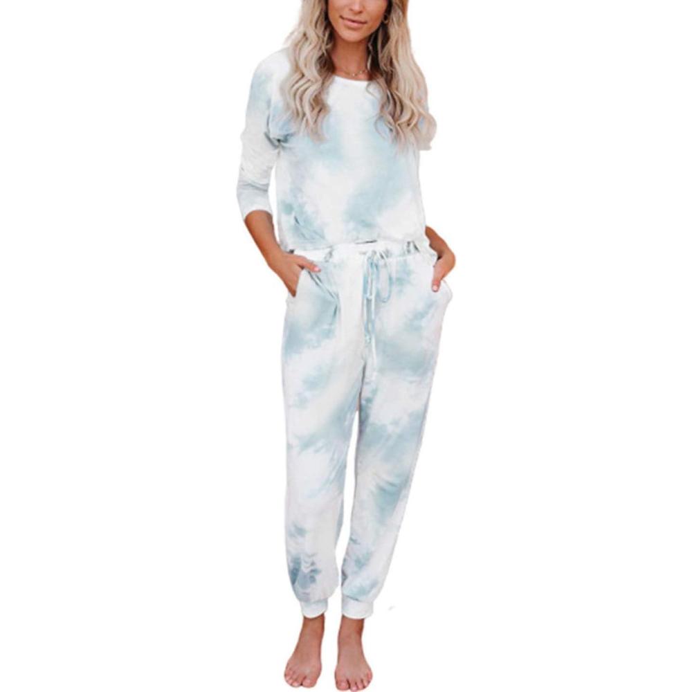 Flygo womens outfits/2 pieces outfits/Pajamas sets/Tie dye outfits/Long sleeve sweatshirt/Crewneck sweatshirt/Long sweatpants/Tapered sweatpants
