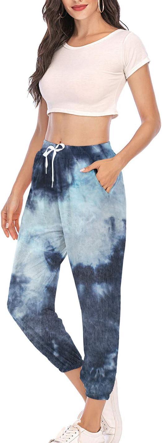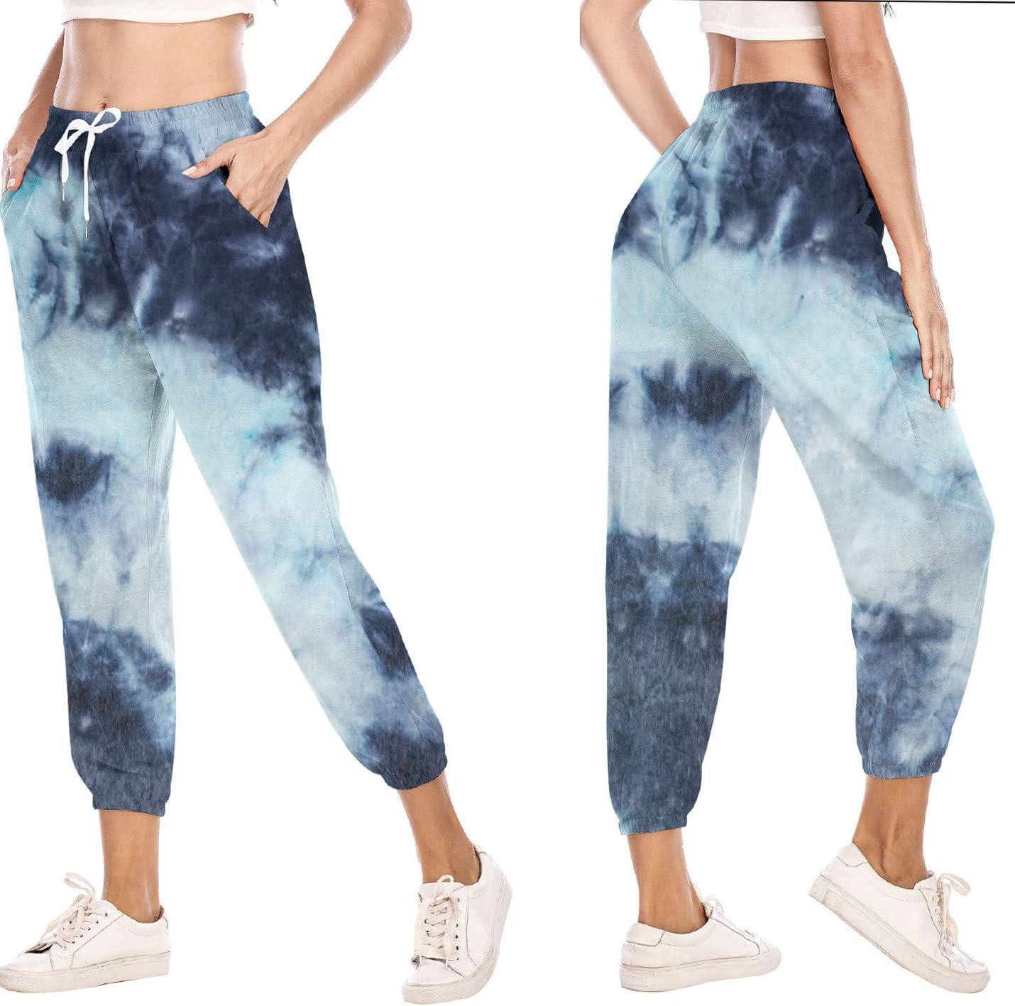Womens High Elastic Waist Tie Dye Baggy Sweatpants with Drawstring
