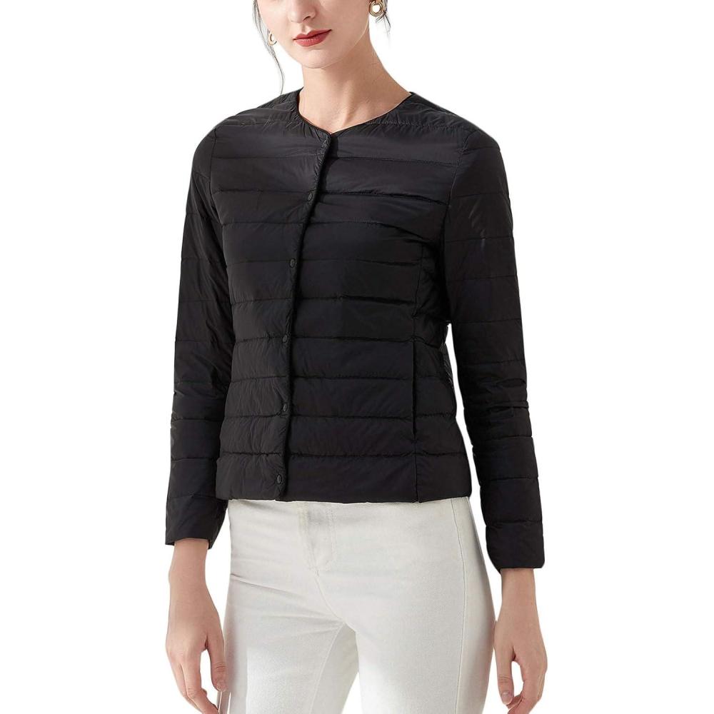 Flygo Women’s Ultra Light Packable Down Jacket Puffer Coat(Black)