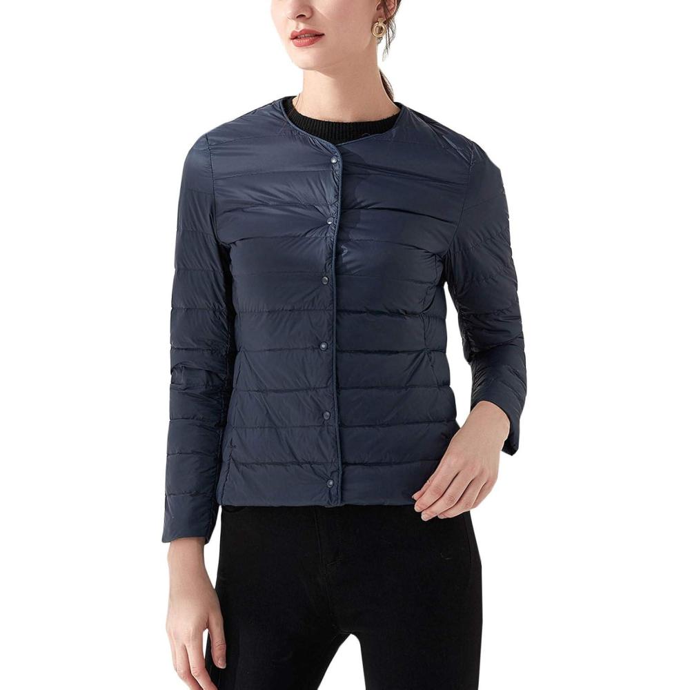 Flygo Women’s Ultra Light Packable Down Jacket Puffer Coat(Navy)