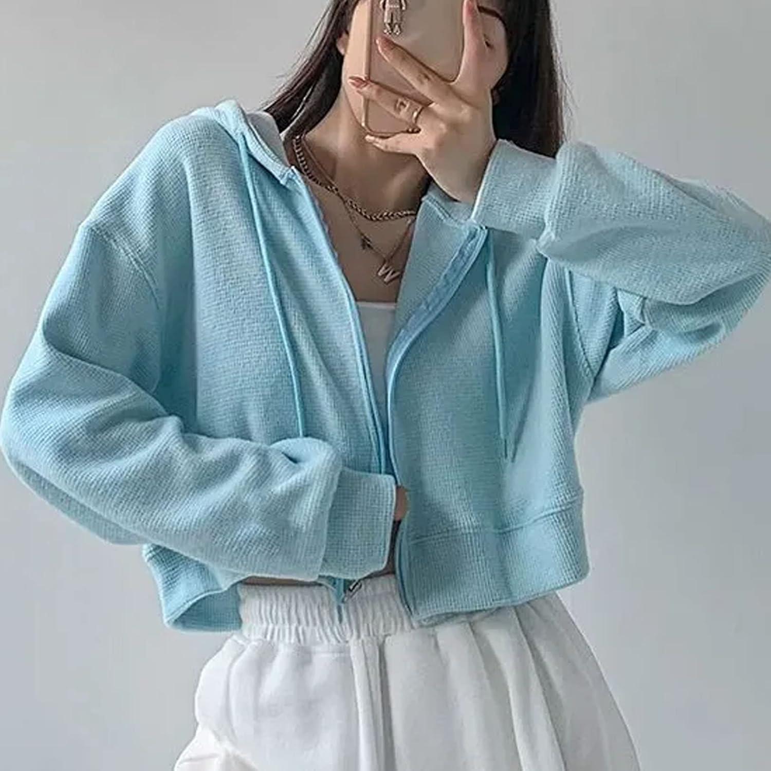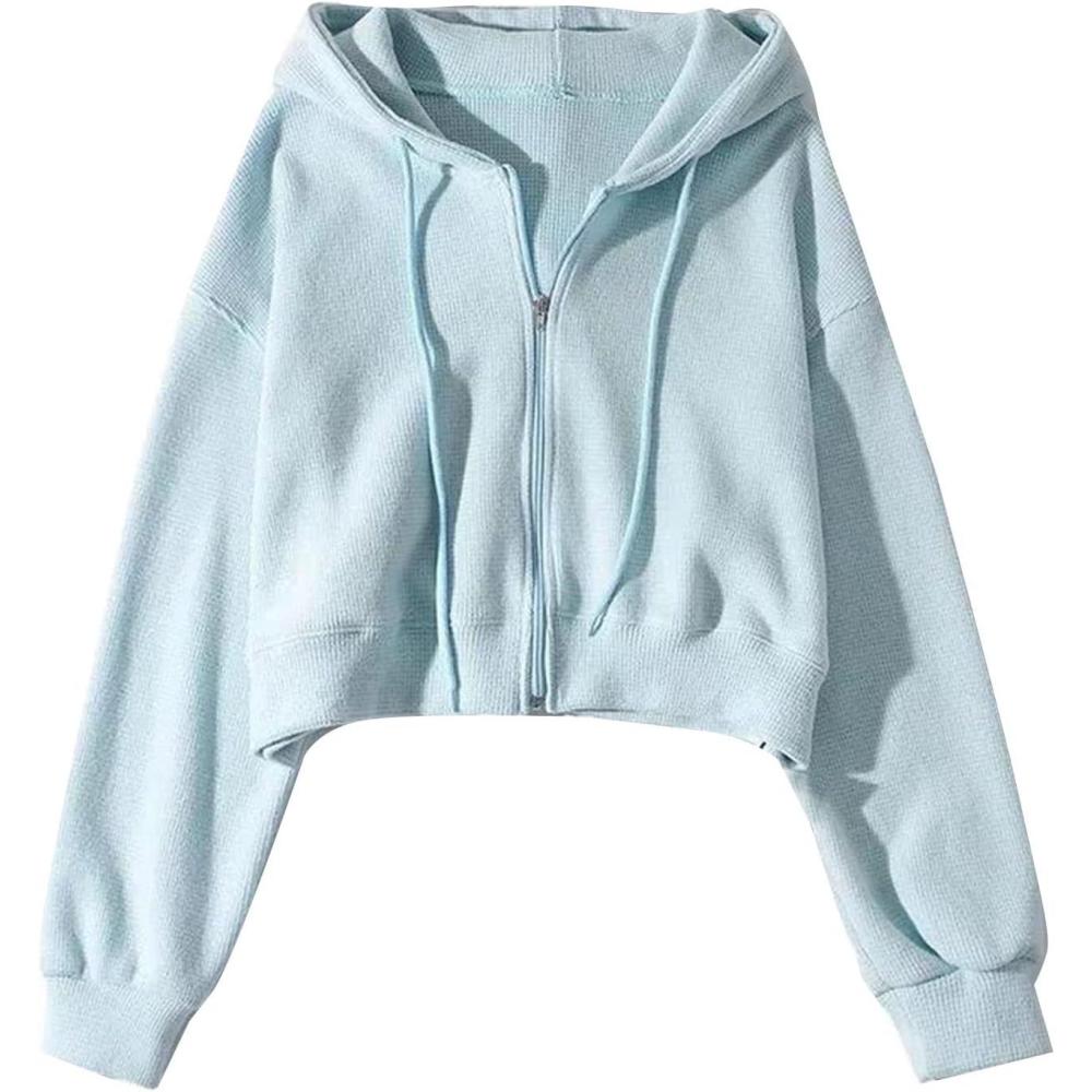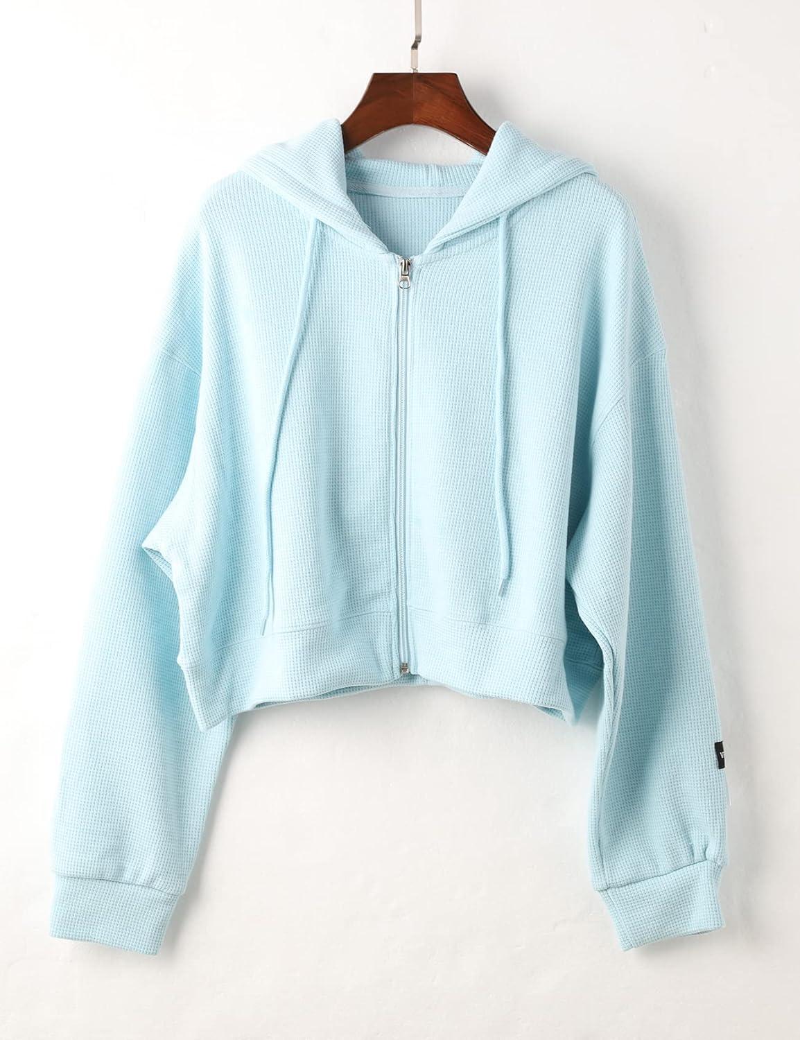 Get up to 50% off on Flygo Women’s Waffle Knit Cropped Zip Up Hoodie Vintage Long Sleeve Sweatshirt Jacket with Hood(Blue) styles during our spring sale event.