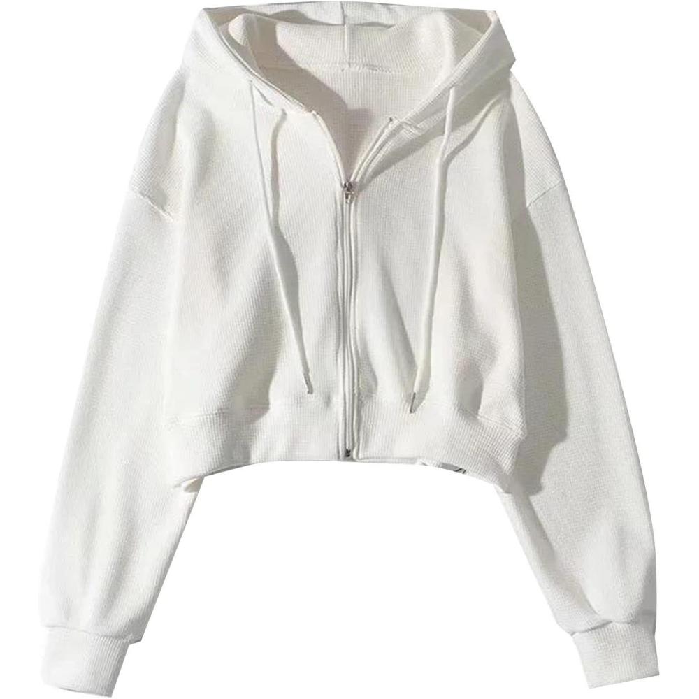 Get up to 70% off on Flygo Women’s Waffle Knit Cropped Zip Up Hoodie Vintage Long Sleeve Sweatshirt Jacket with Hood(White) styles during our end-of-season clearance event.