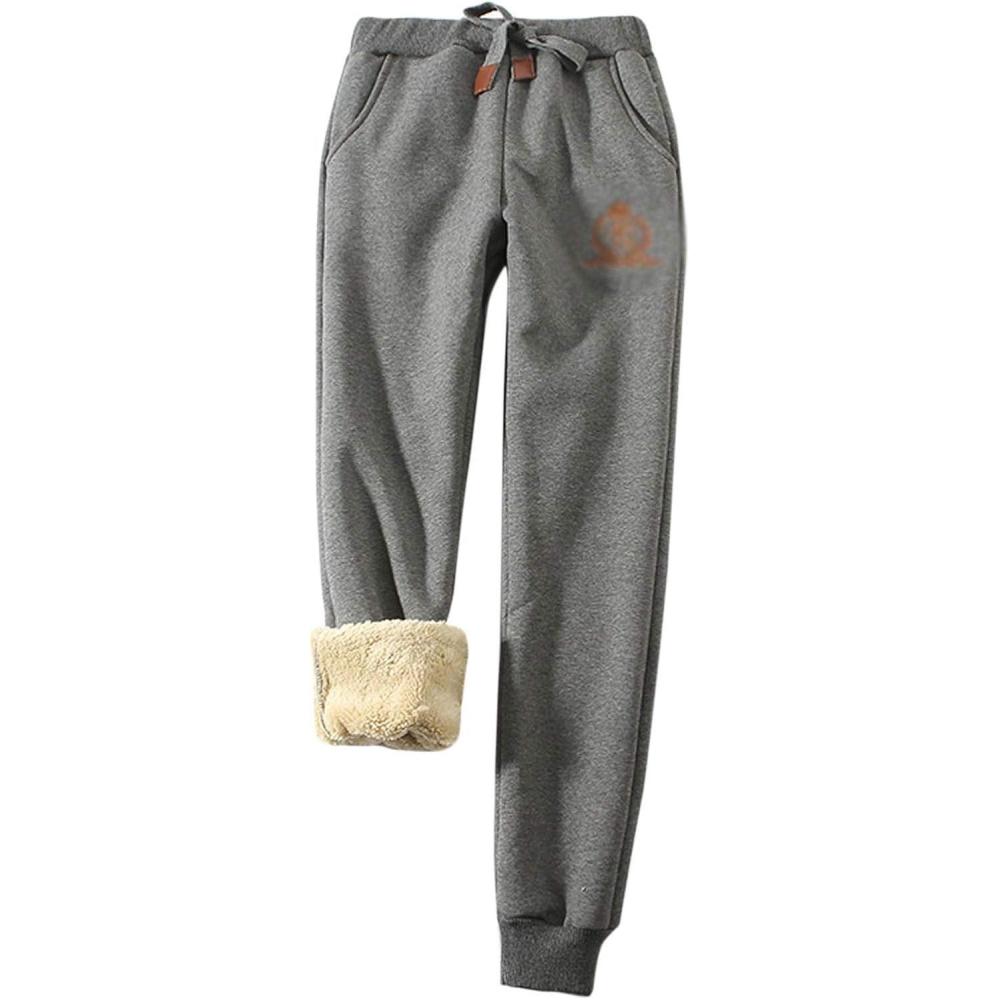 Flygo Womens Warm Fleece Pants Sherpa Lined Sweatpants Active Running Joggers Pants(Grey)