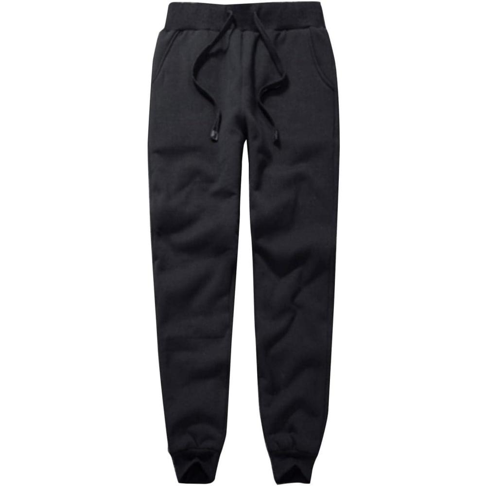 Flygo Women’s Warm Sherpa Lined Sweatpants Drawstring Jogger Fleece Pants(Black)
