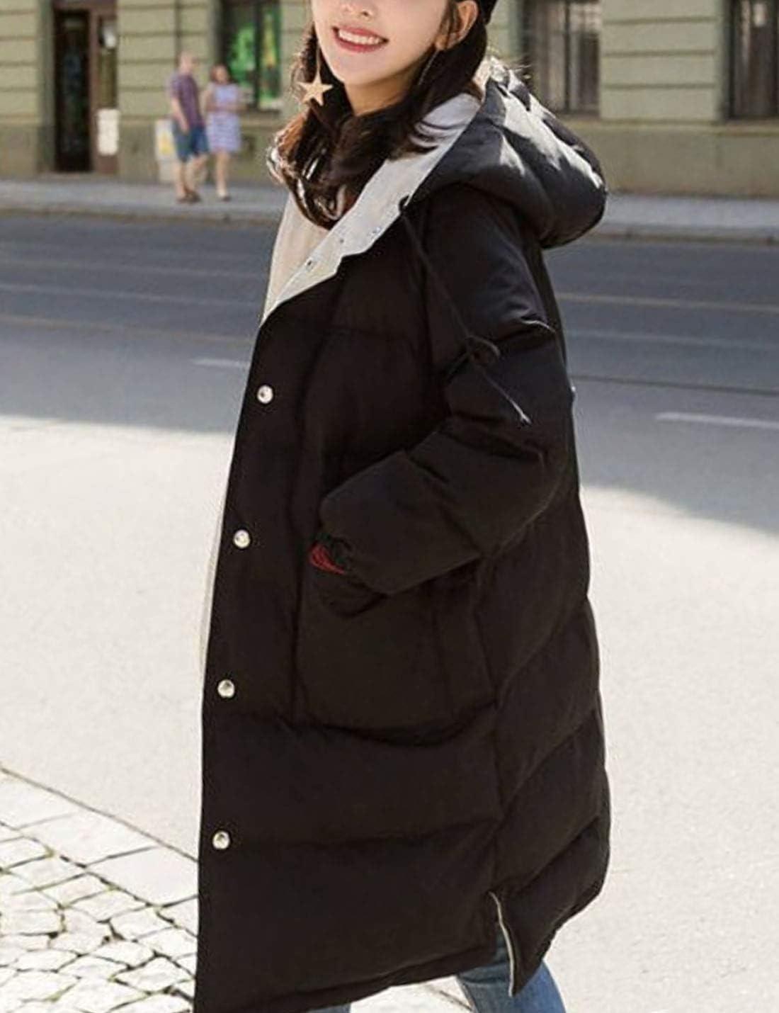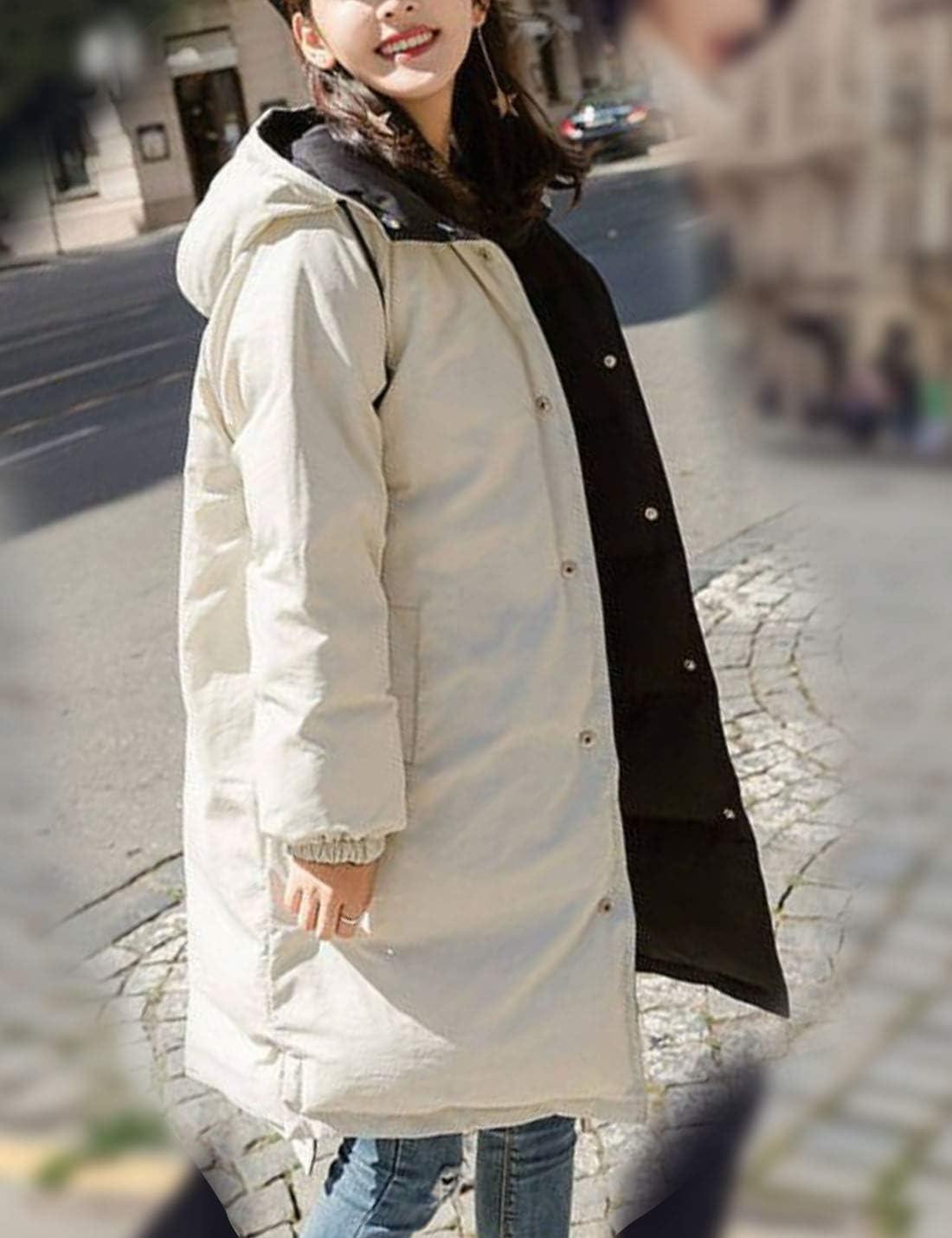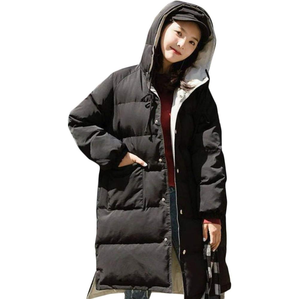 Women's winter casual warm thickened button hooded mid-long puffer down outerwear jackets