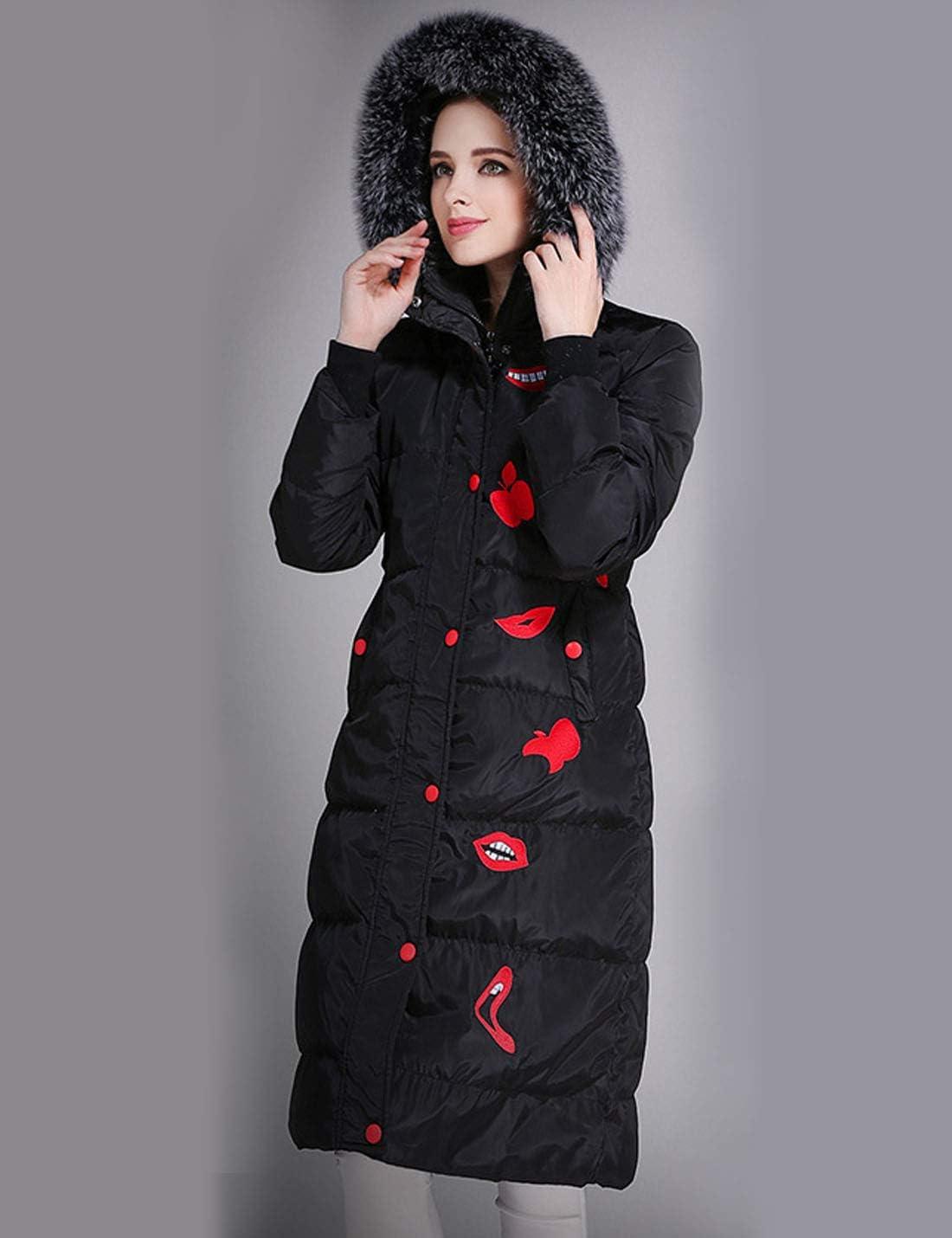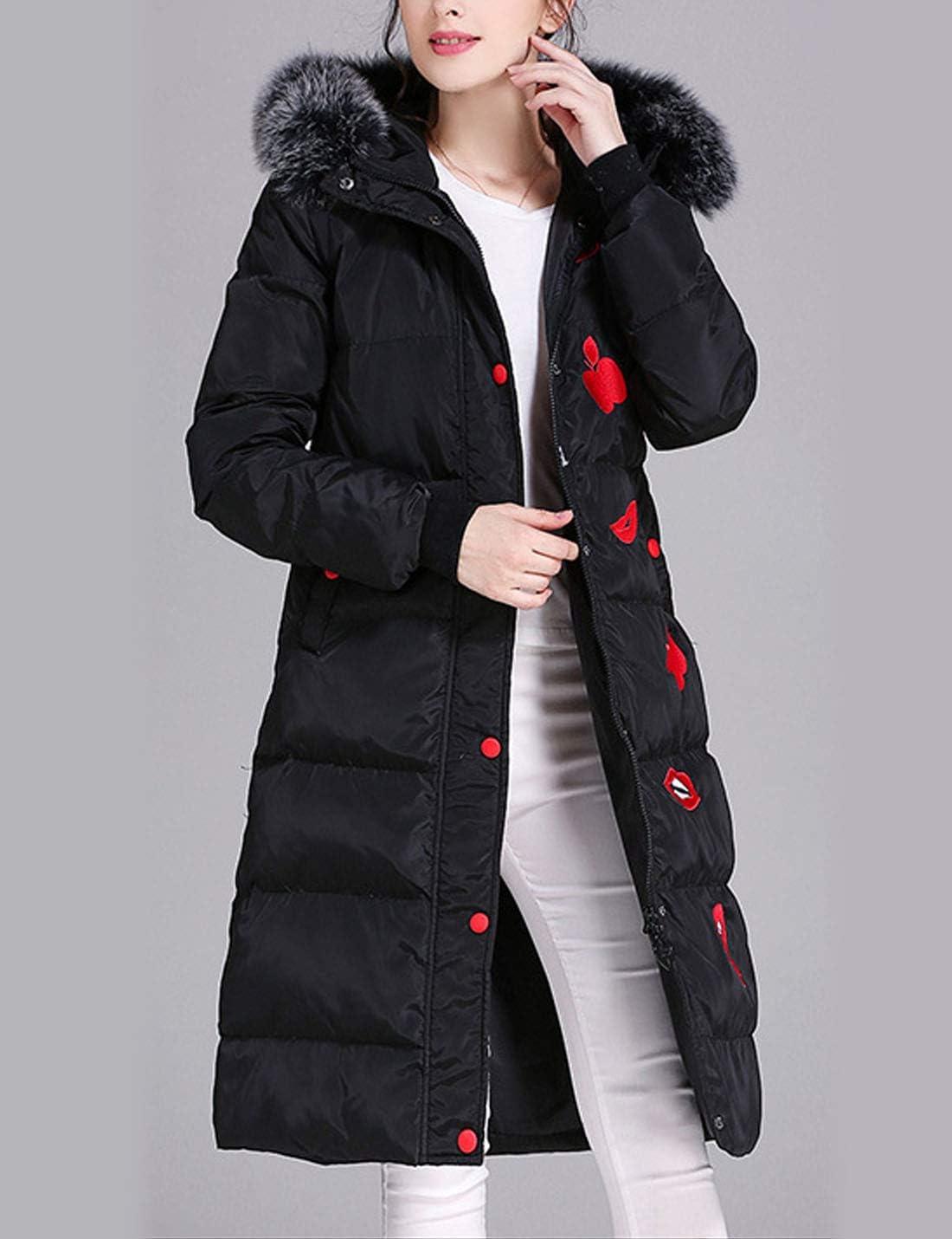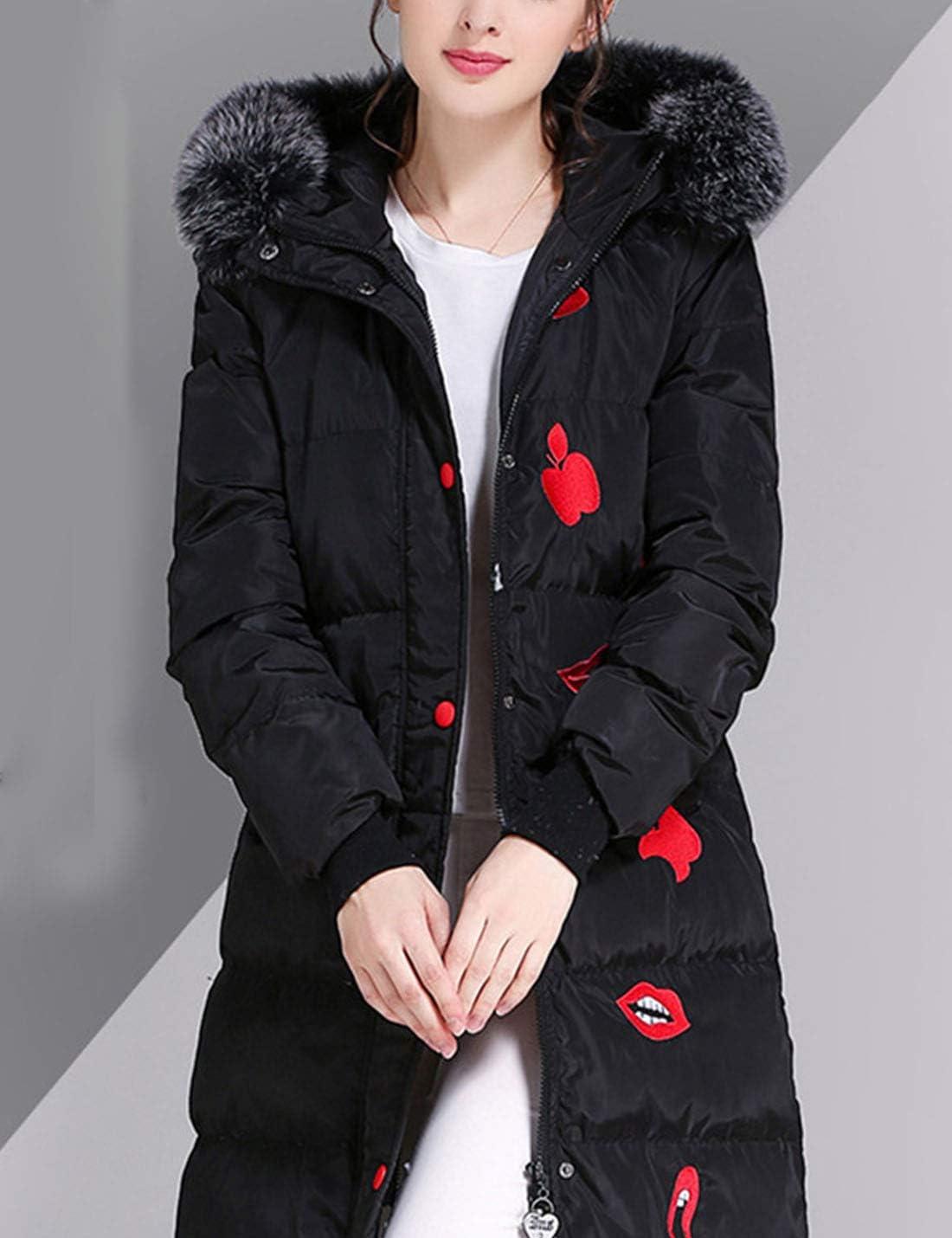 Flygo Womens Winter Warm Faux Fur Hooded Collar Down Coat Qulited Puffer Jacket(Black#2)