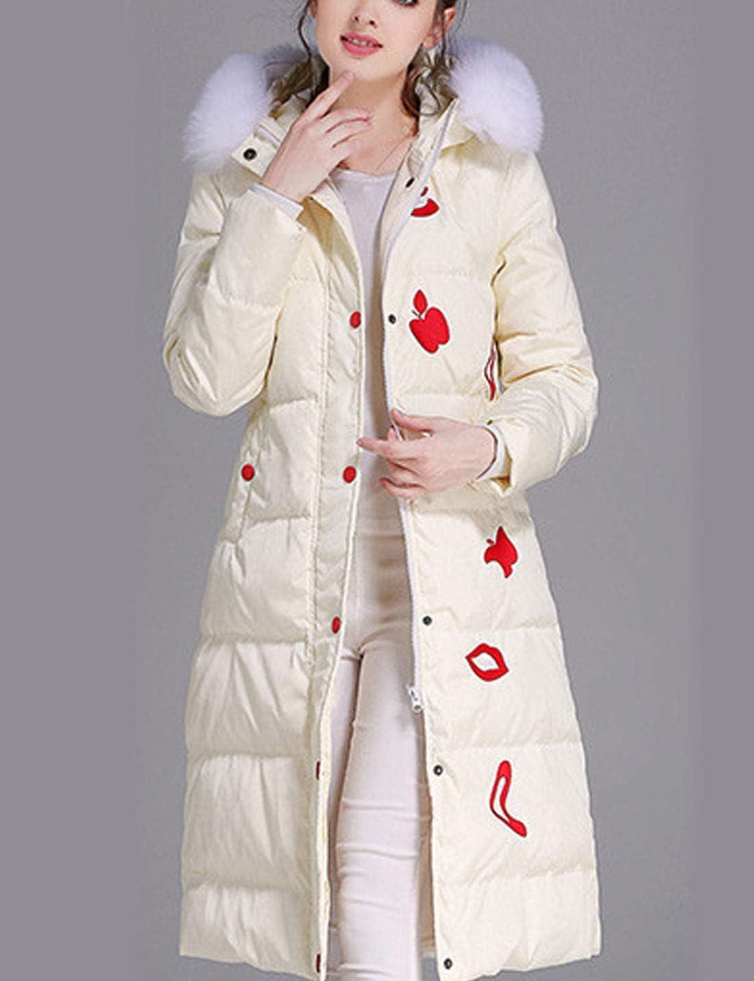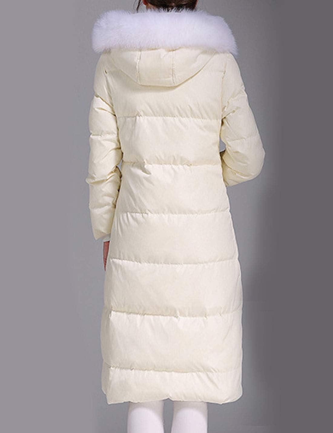 Flygo Womens Winter Casual Quilted Maxi Puffer Down Coats Full-Zip Long Jacket with Hood(Creamy-white)