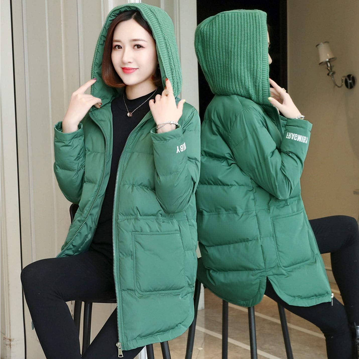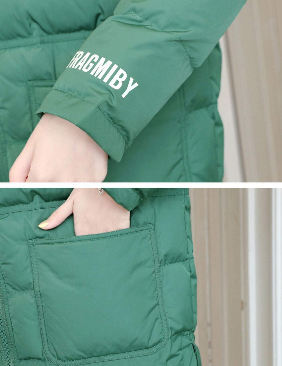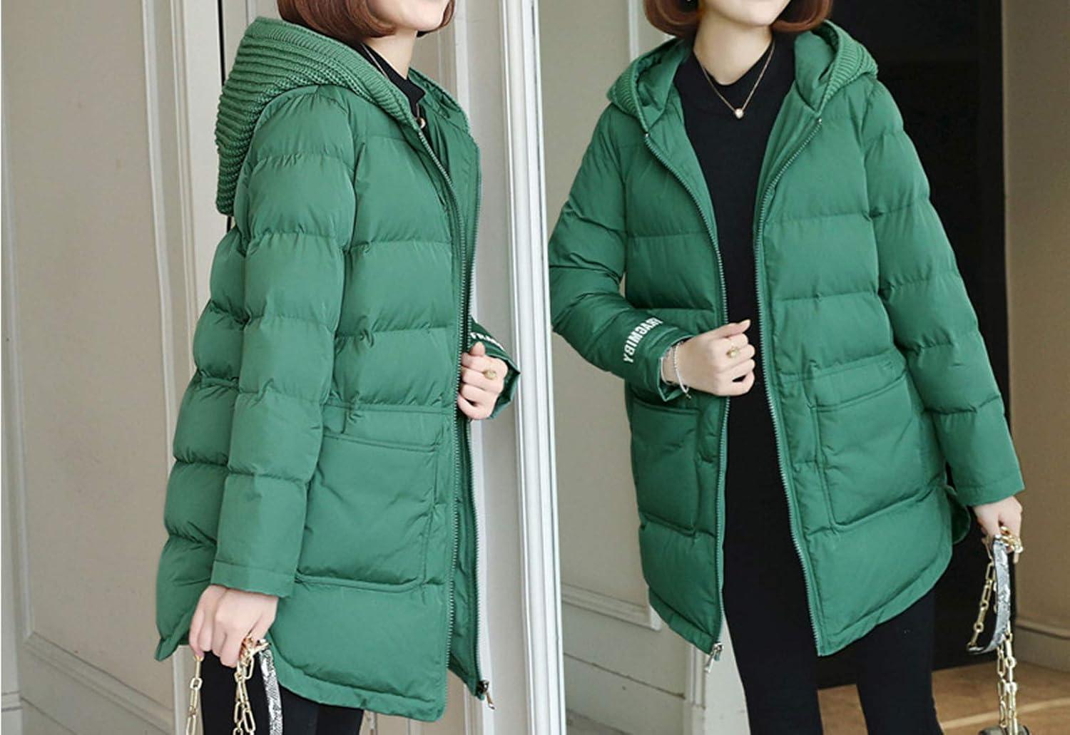 Flygo Womens Winter Casual Thicken Warm Puffer Hooded Mid-Long Cotton Down Coat Full Zip Outerwear Jackets(Green)