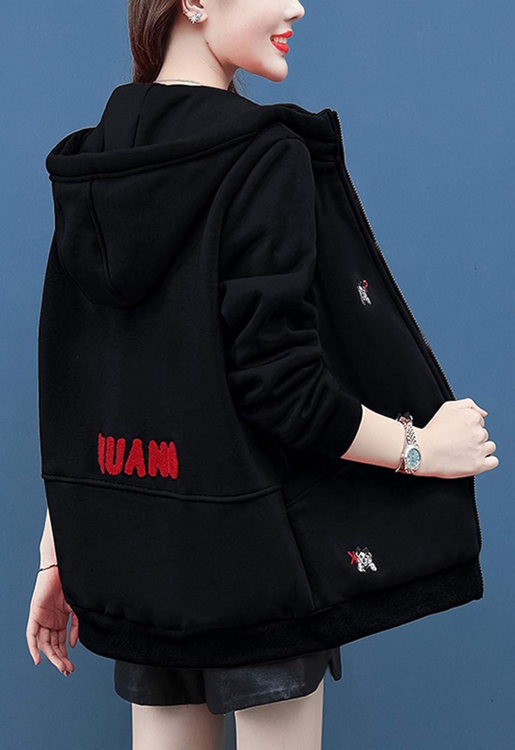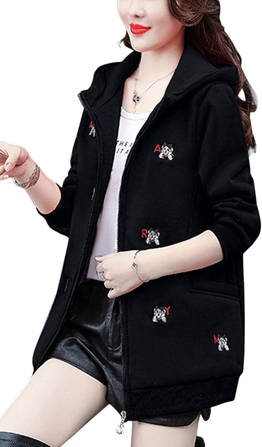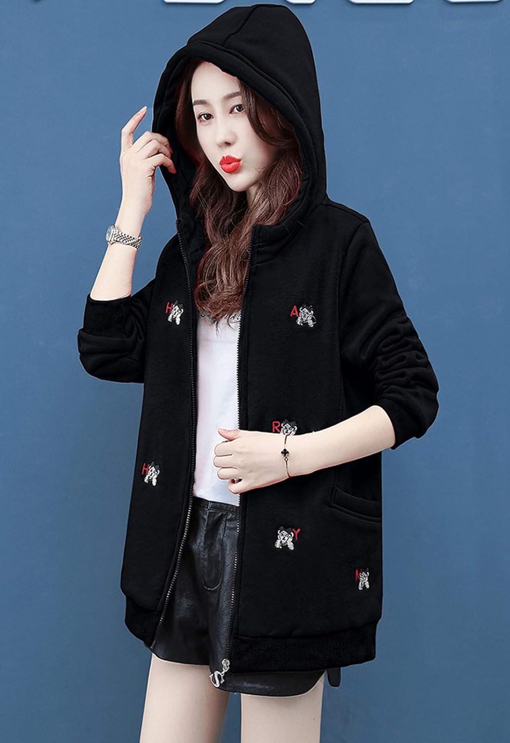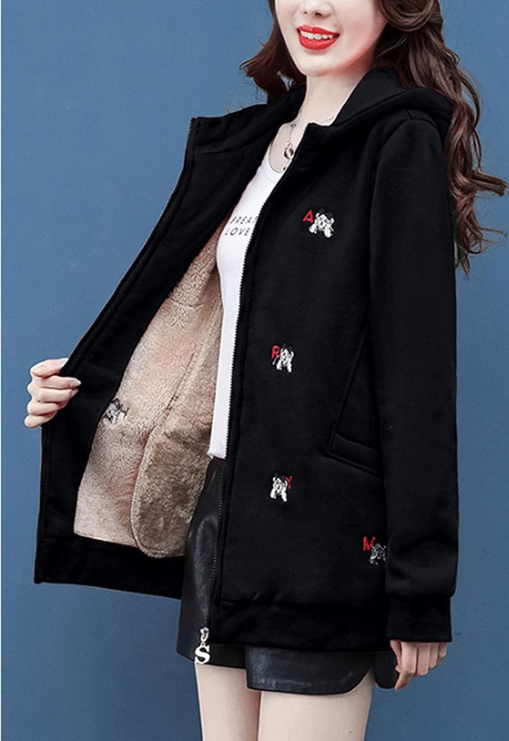 Women's winter casual coat sherpa lined zip hoodie long sweatshirt