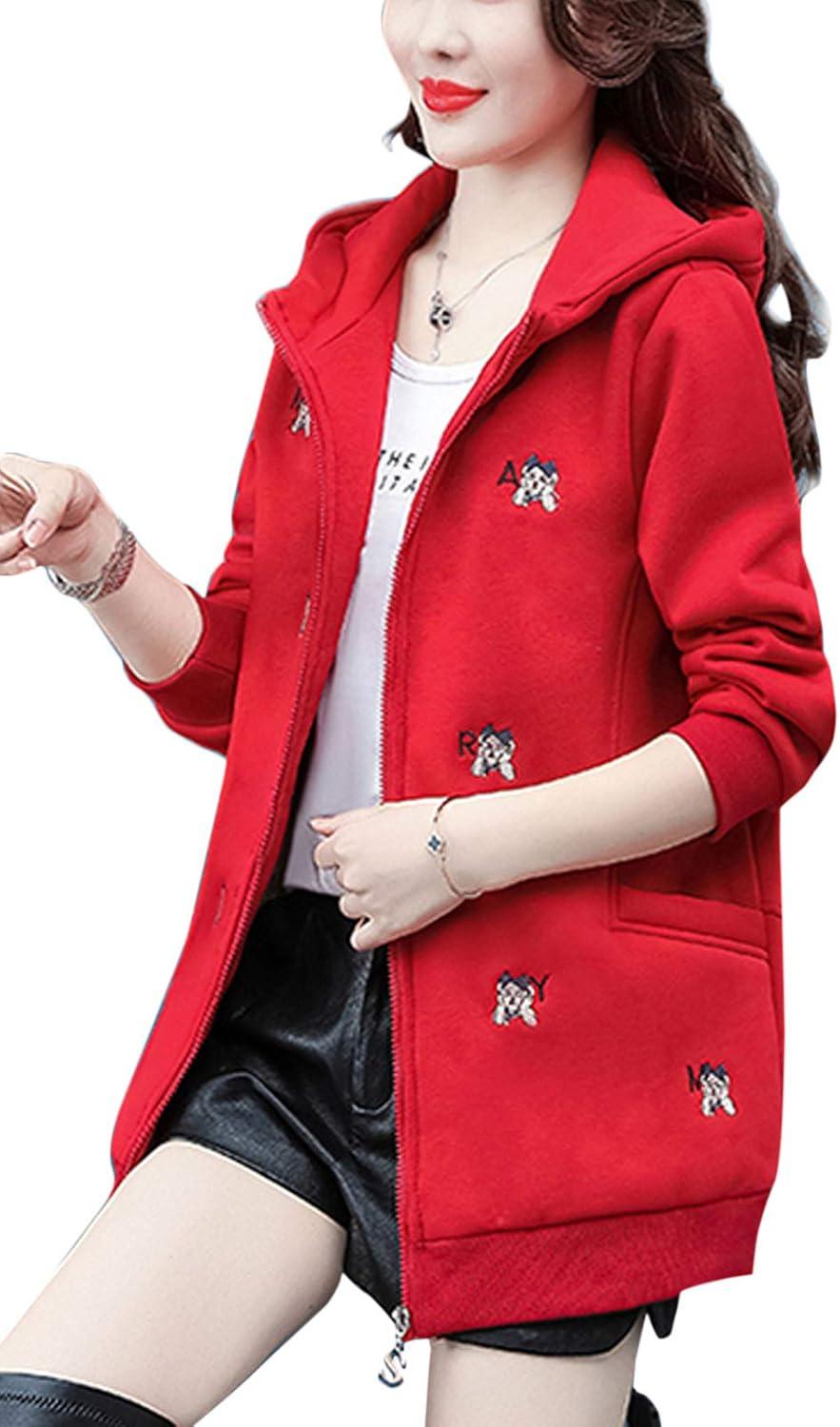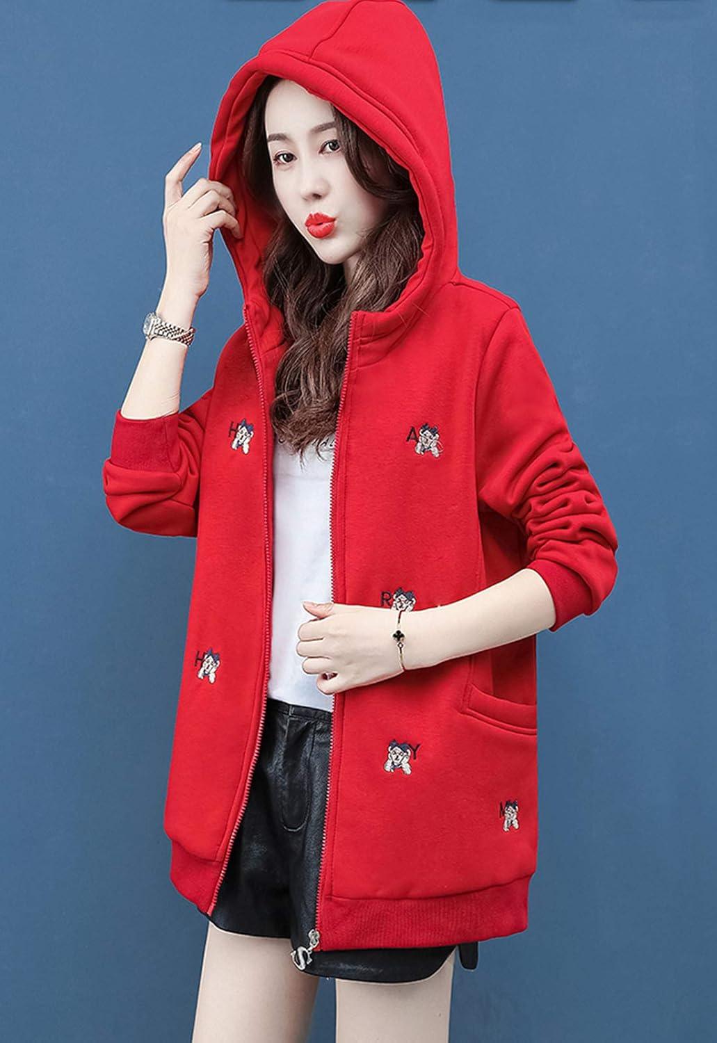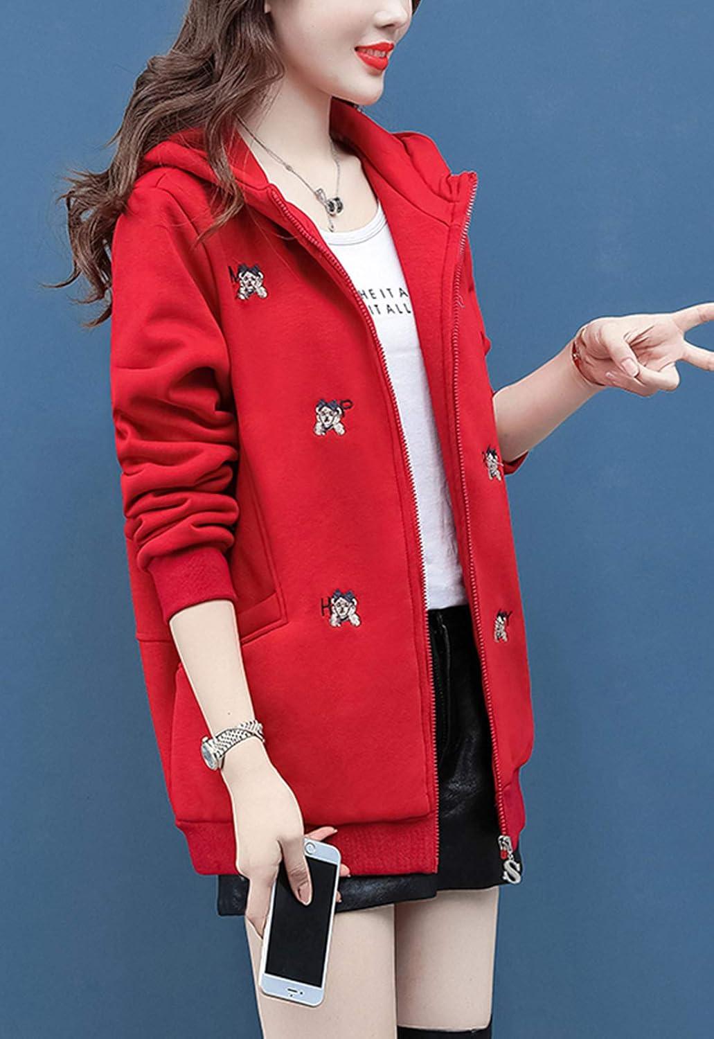 Flygo Women’s Winter Casual Zip Up Warm Fleece Lined Hoodies Long Sleeves Sweatshirt Jacket Coats Outerwear(Red)