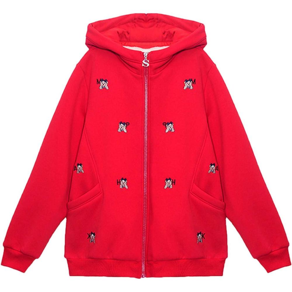 imageFlygo Womens Warm Fleece Sherpa Lined Hoodies FullZip Hooded Sweatshirt Jacket Small Red