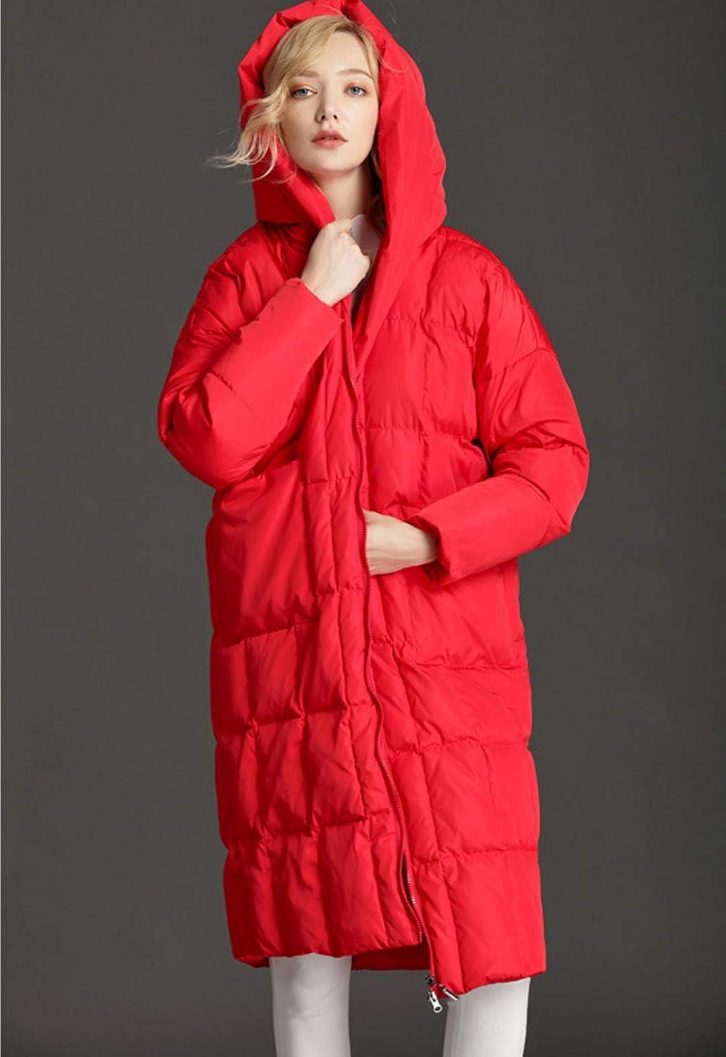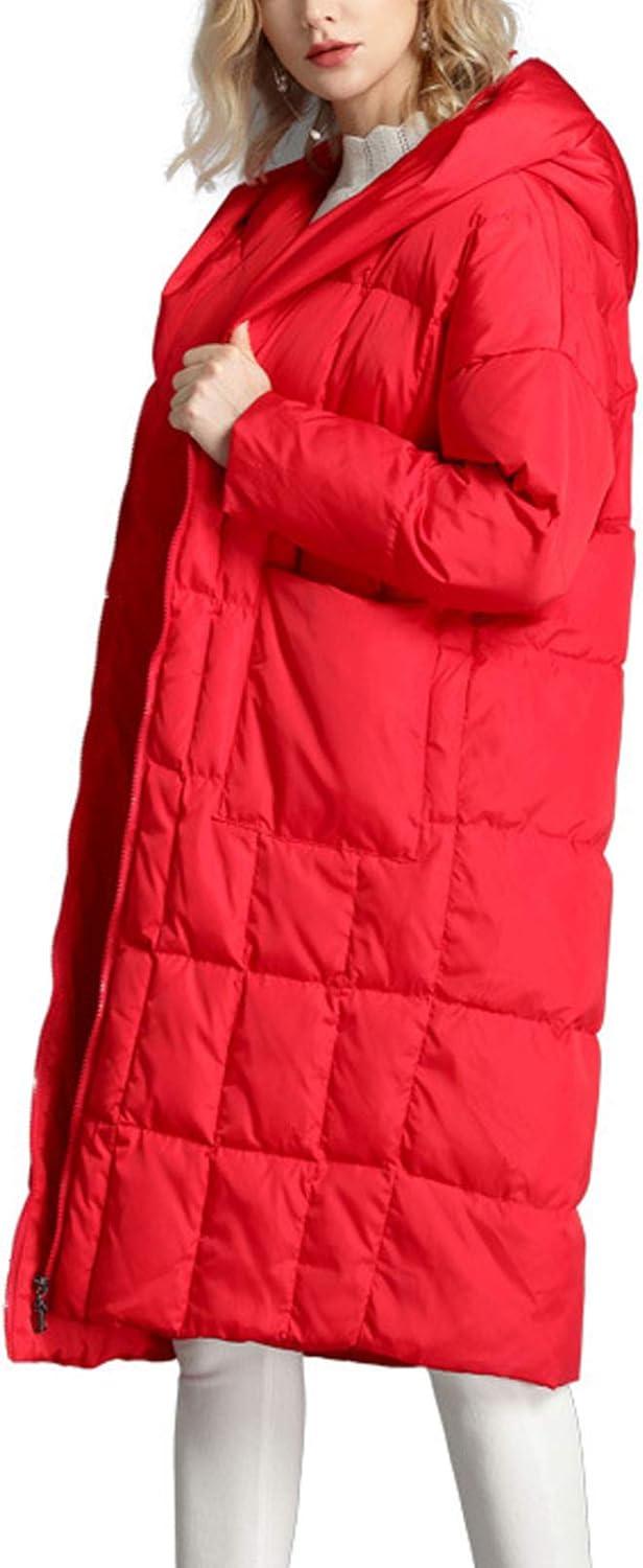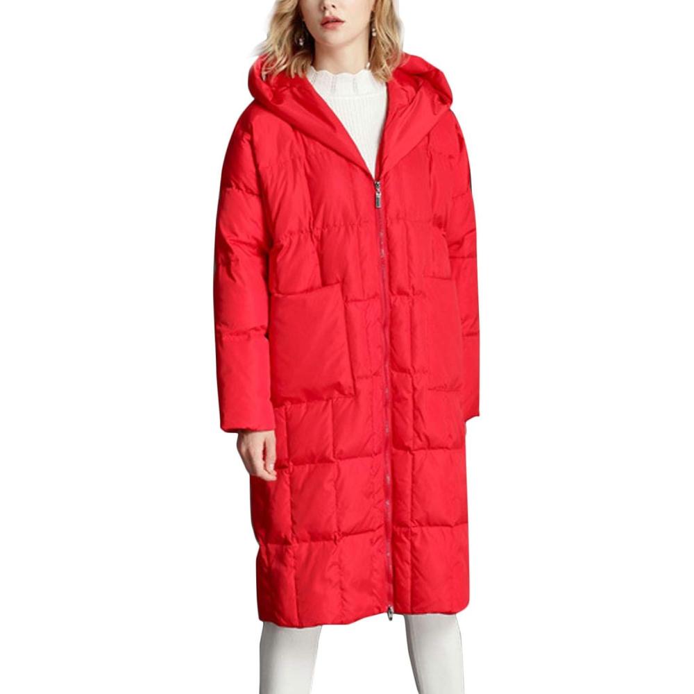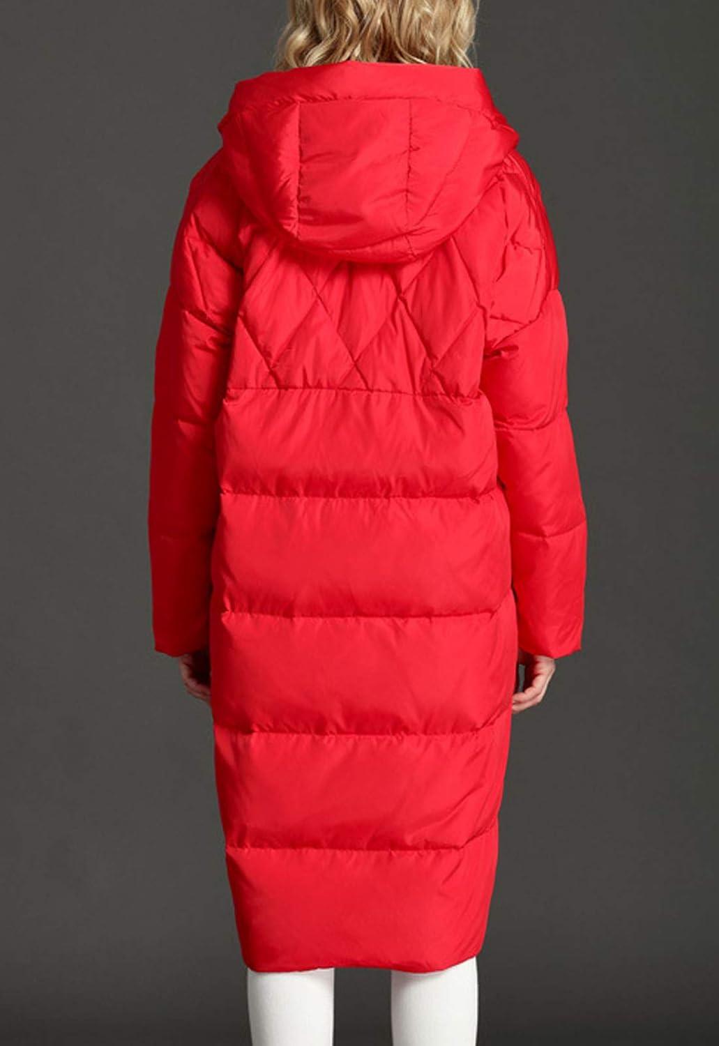 Flygo Women’s Winter Coats Hooded Loose Mid-Long Quilted Puffer Down Jacket(Red)
