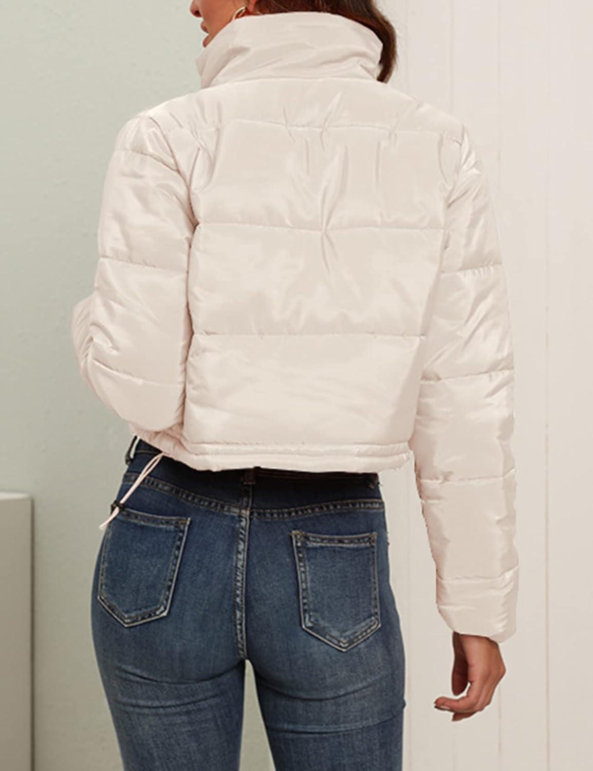 Flygo Puffer jacket womens cropped/Lightweight warm padded quilted jacket/Cropped down jacket for teen girls/Zip up puffy bubble coats