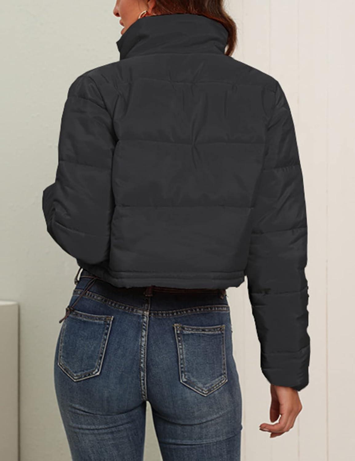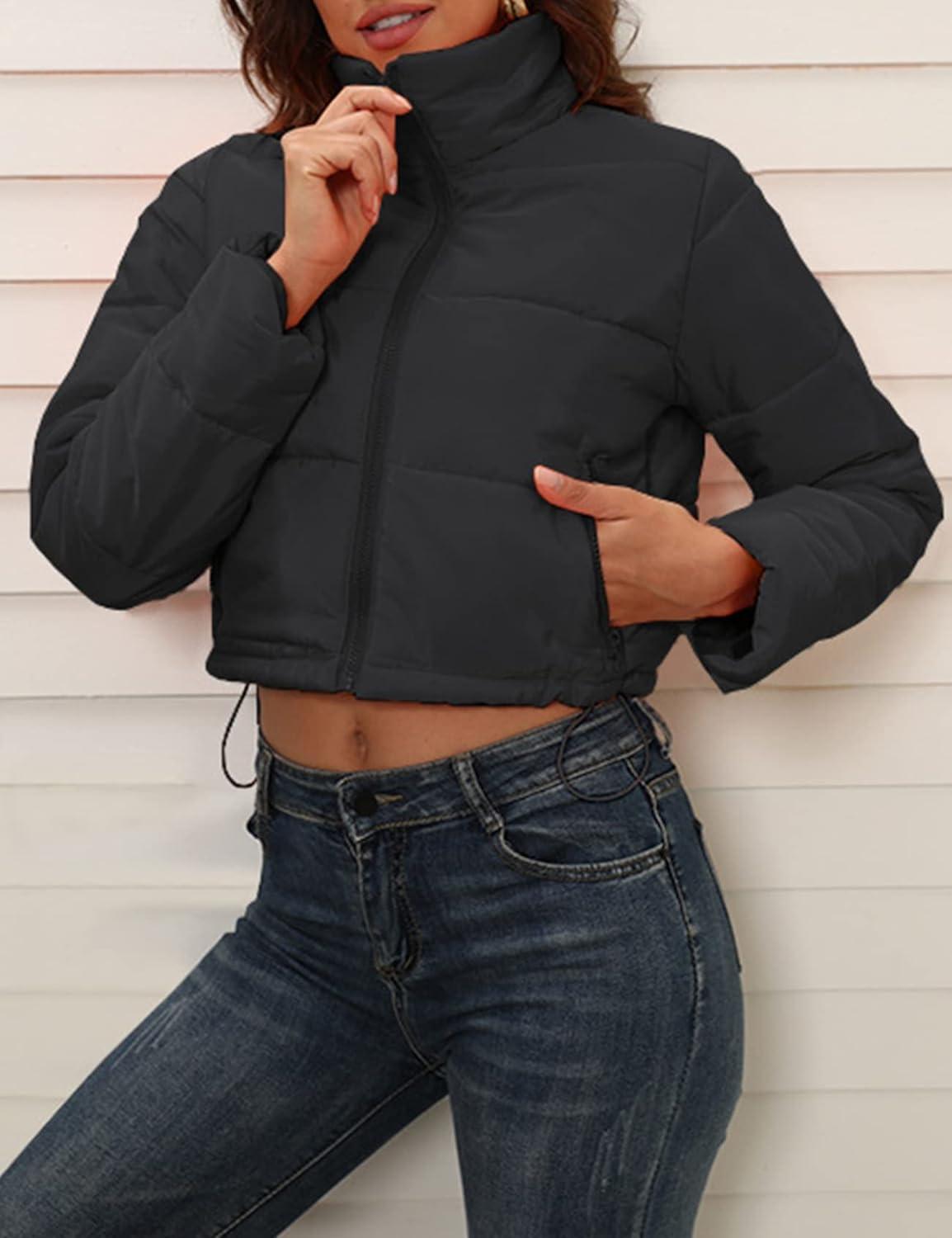Flygo Puffer jacket womens cropped/Lightweight warm padded quilted jacket/Cropped down jacket for teen girls/Zip up puffy bubble coats