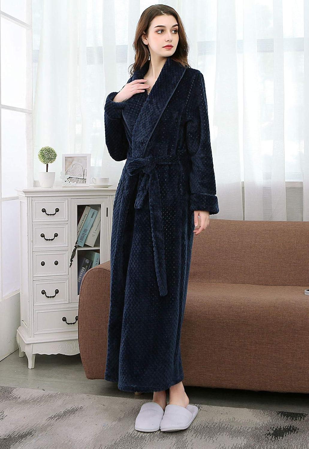 Flygo Women’s Winter Fleece Plush Bathrobe Long Flannel Sleepwear Belted(Navy)
