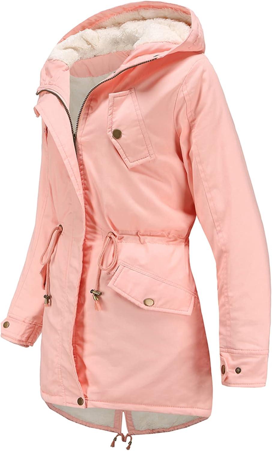 Flygo women's jacket/Fleece lined parka jackets/Hooded sherpa lined anorak coat/Drawstring waist winter coats