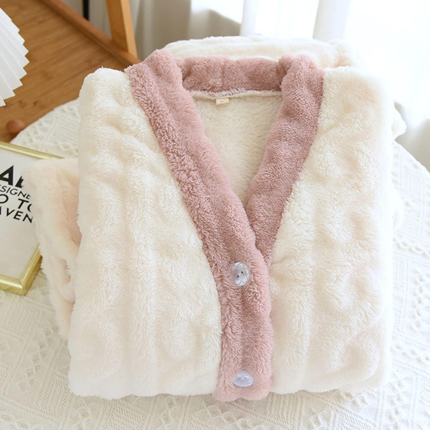 imageFlygo Womens Winter Fluffy Pajamas Set Fleece Button Tops and Pants Plush Loungewear SleepwearPink