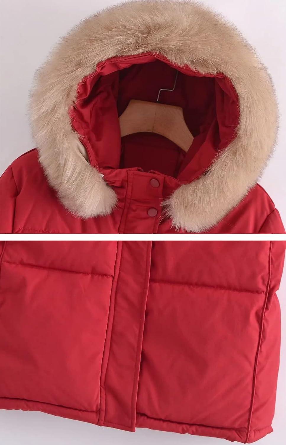 Flygo womens winter long down jacket/ padded parkas coat with fur hood/ hooded puffer jackets for teen girls