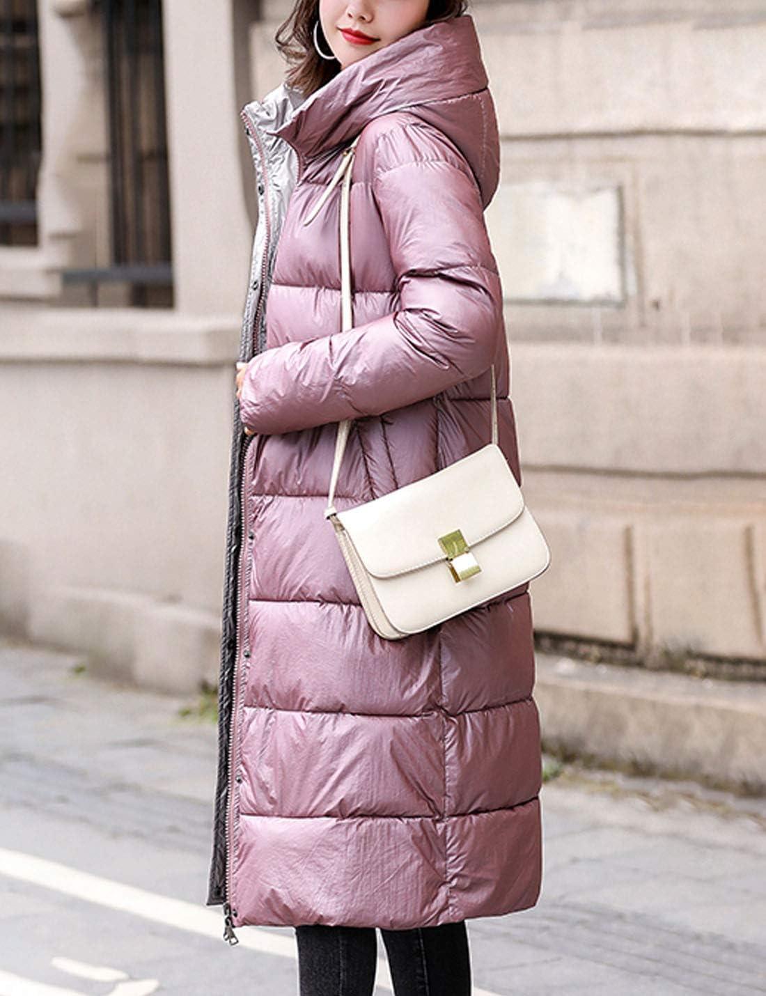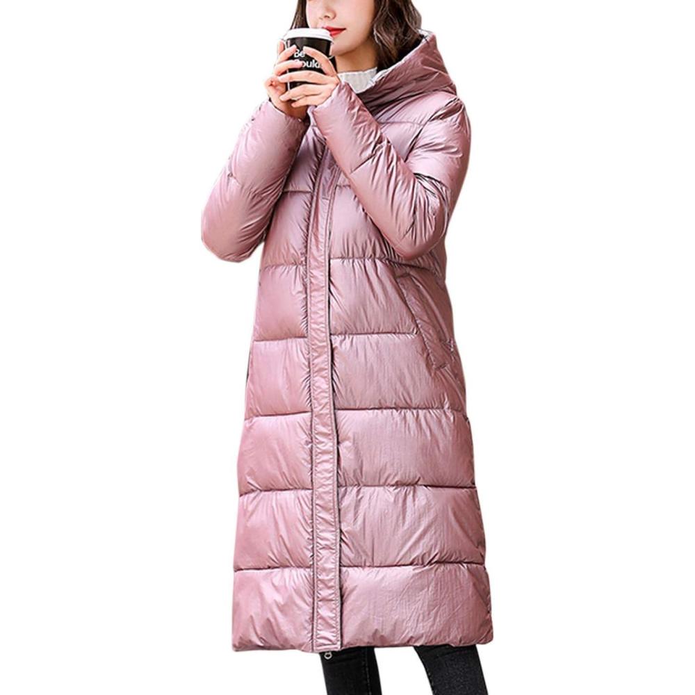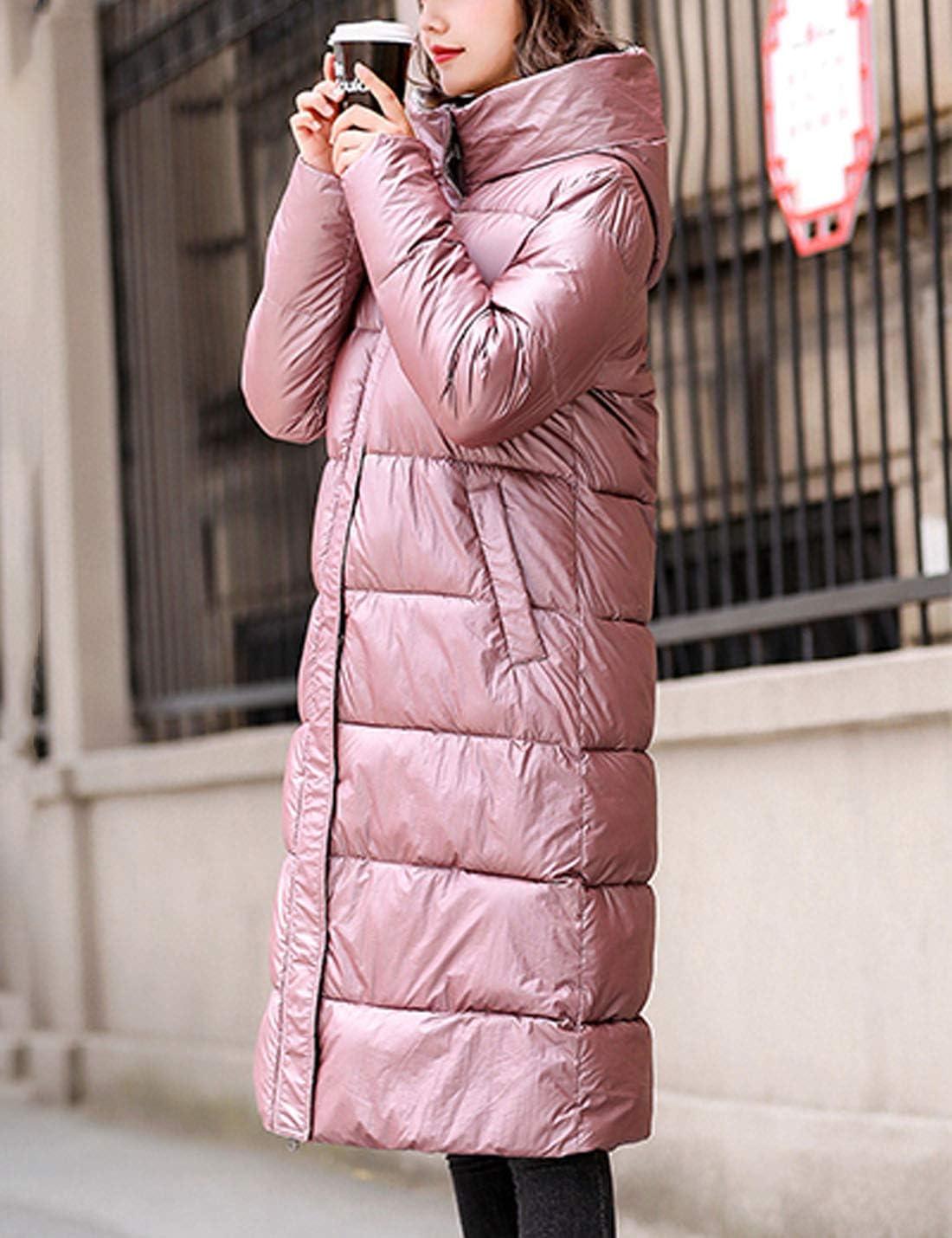 Flygo Women’s Winter Long Down Coats Hooded Quilted Parka Puffer Jacket(Pink)