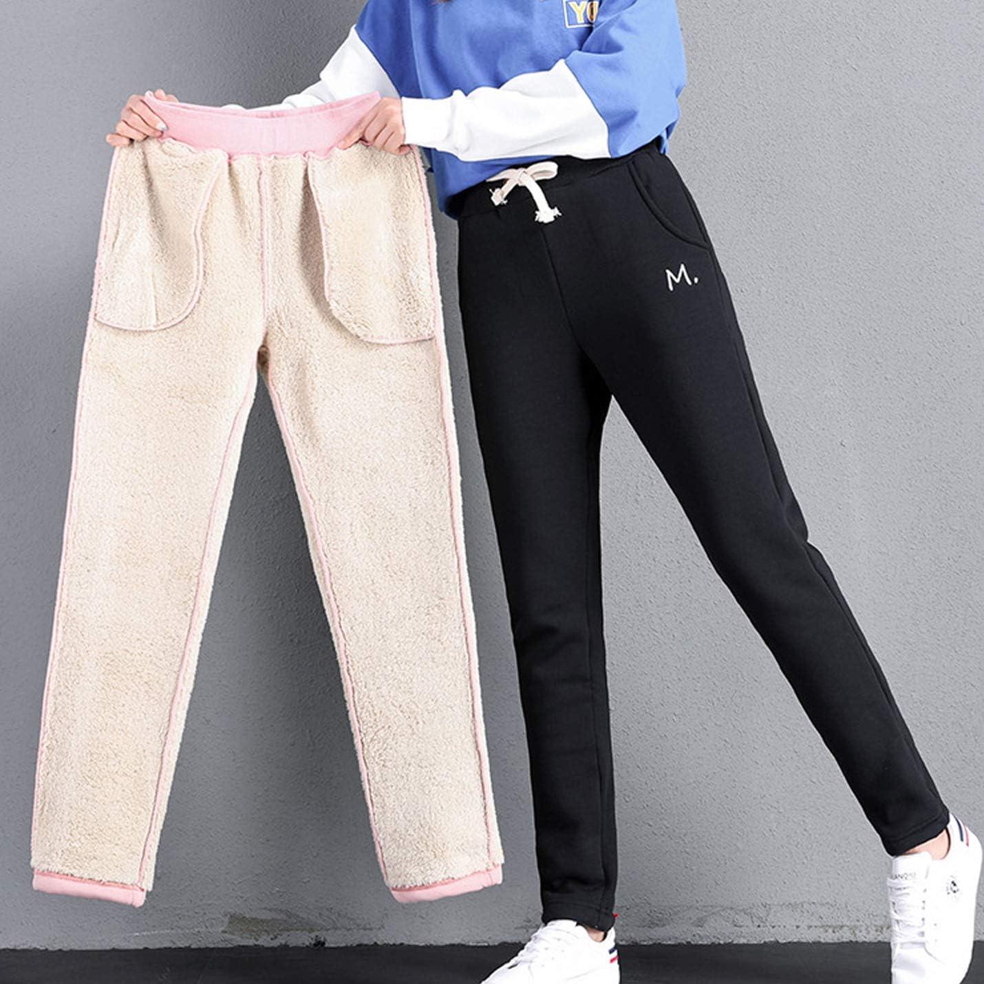 Womens Jogger casual spring fall winter thicken cashmere fleece sherpa lined athletic elastic drawstring pants