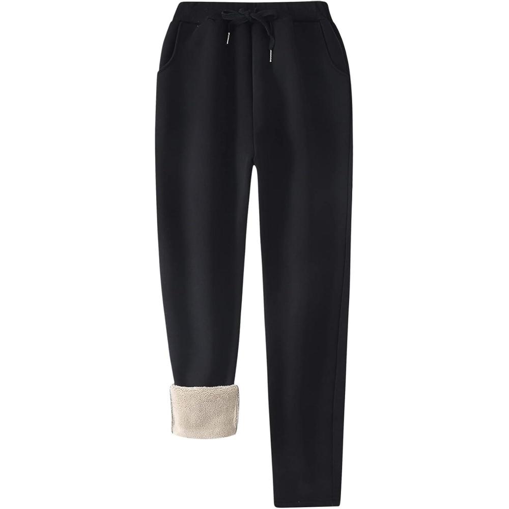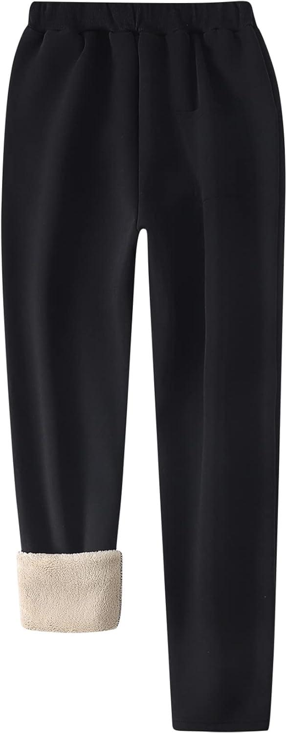 Flygo Women’s Winter Warm Athletic Track Fleece Joggers Pants Sherpa Lined Sweatpants(Black)