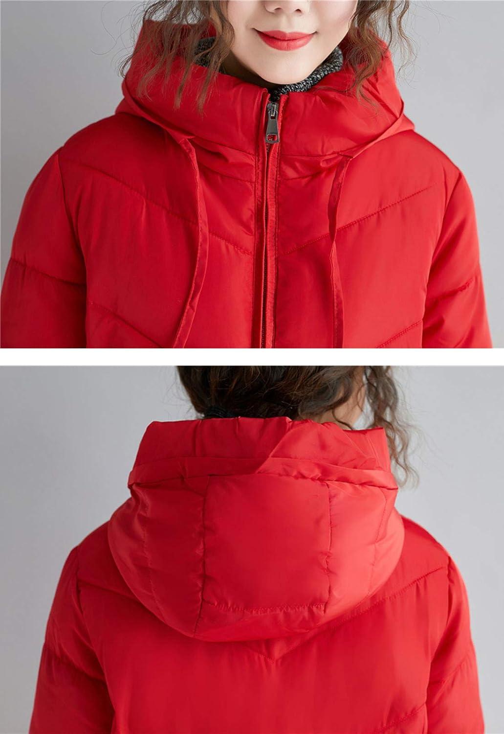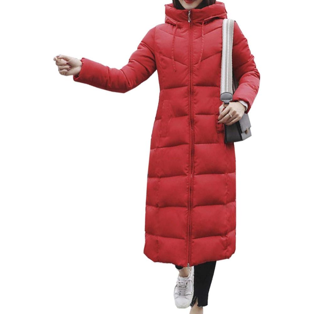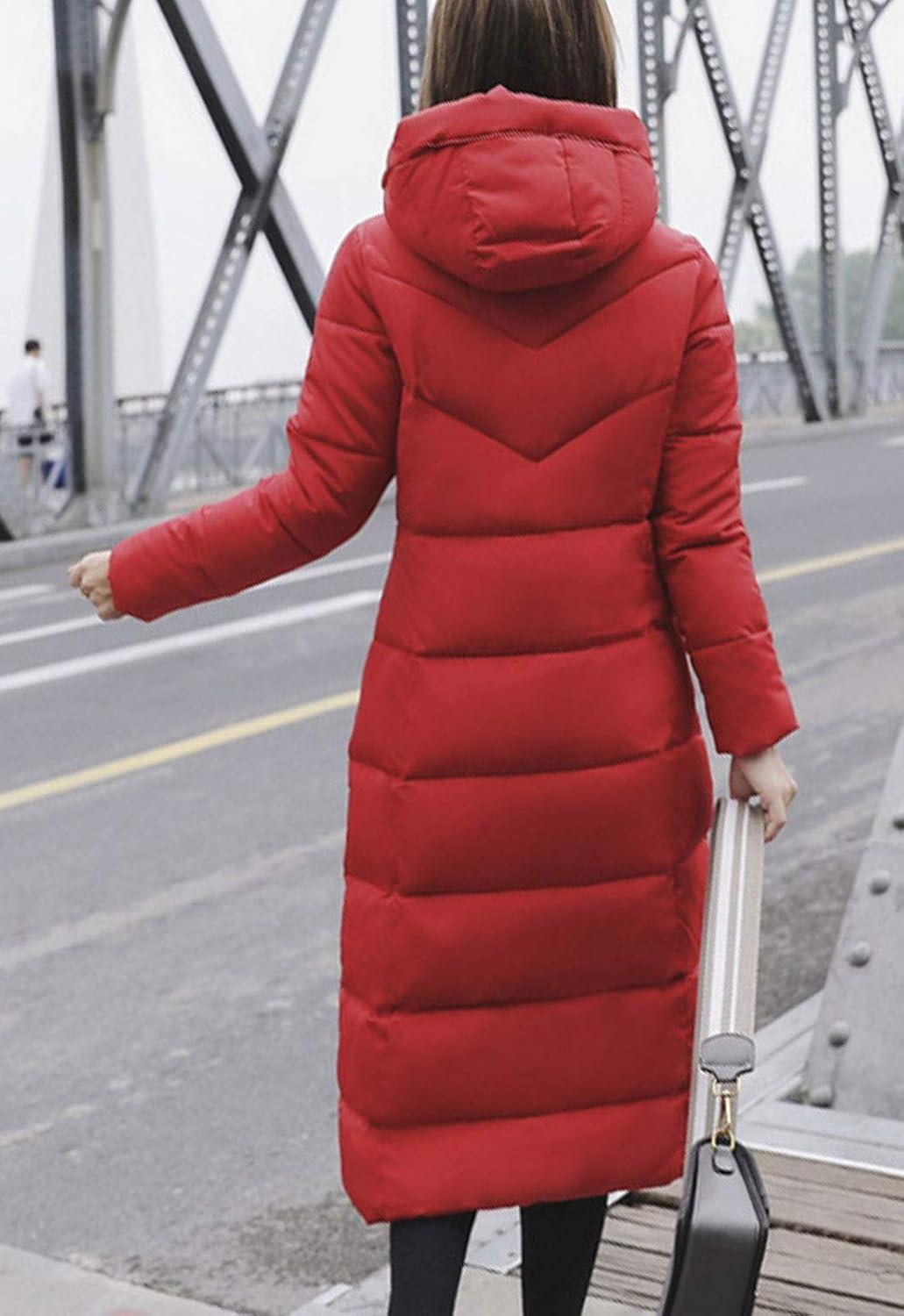 Flygo Womens Winter Warm Faux Fur Hooded Collar Down Coat Qulited Puffer Jacket(Red#2)