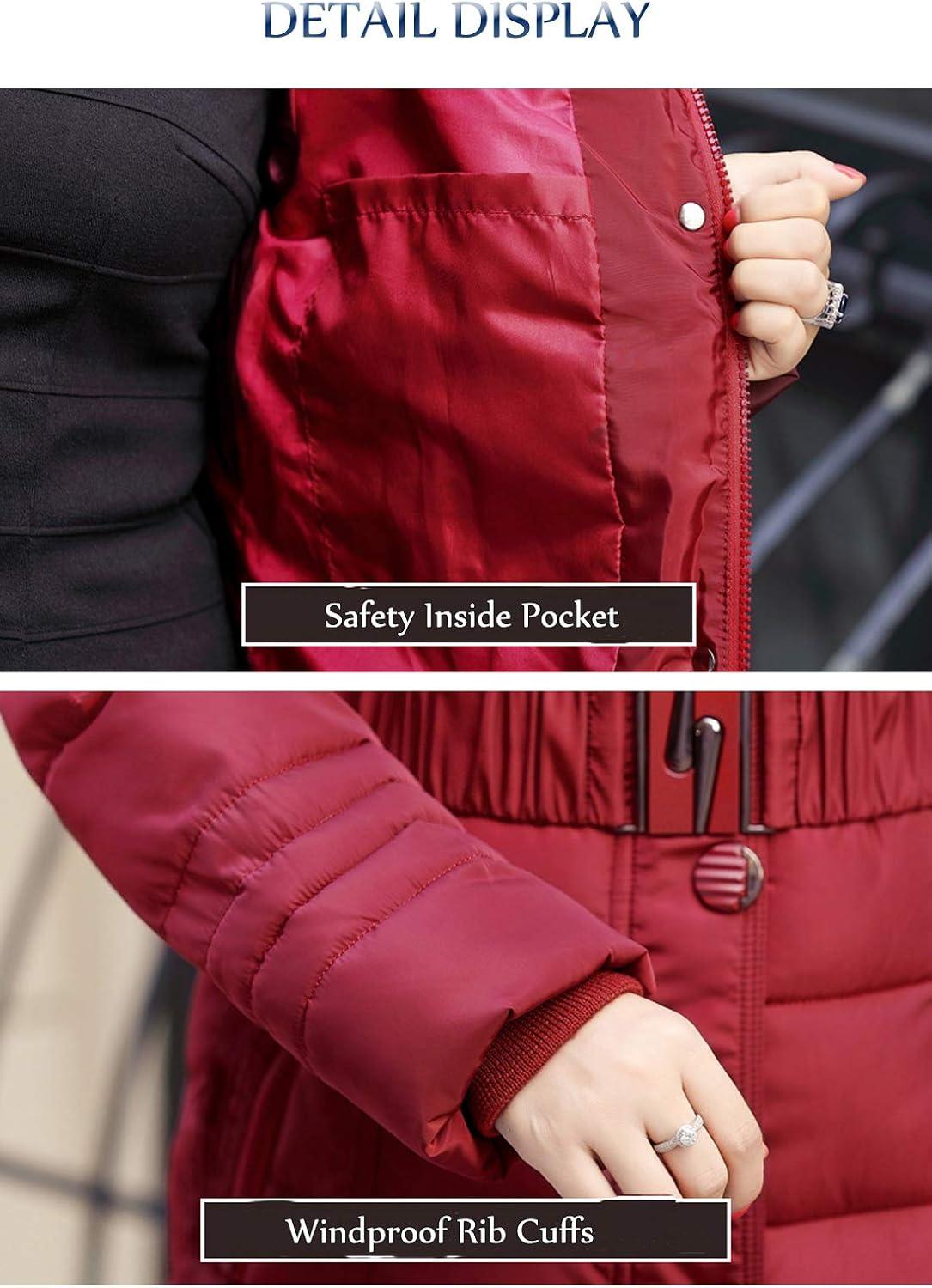 Flygo Women’s Winter Warm Faux Fur Hooded Down Coat Parka Outcoat Puffer Jacket(Red)