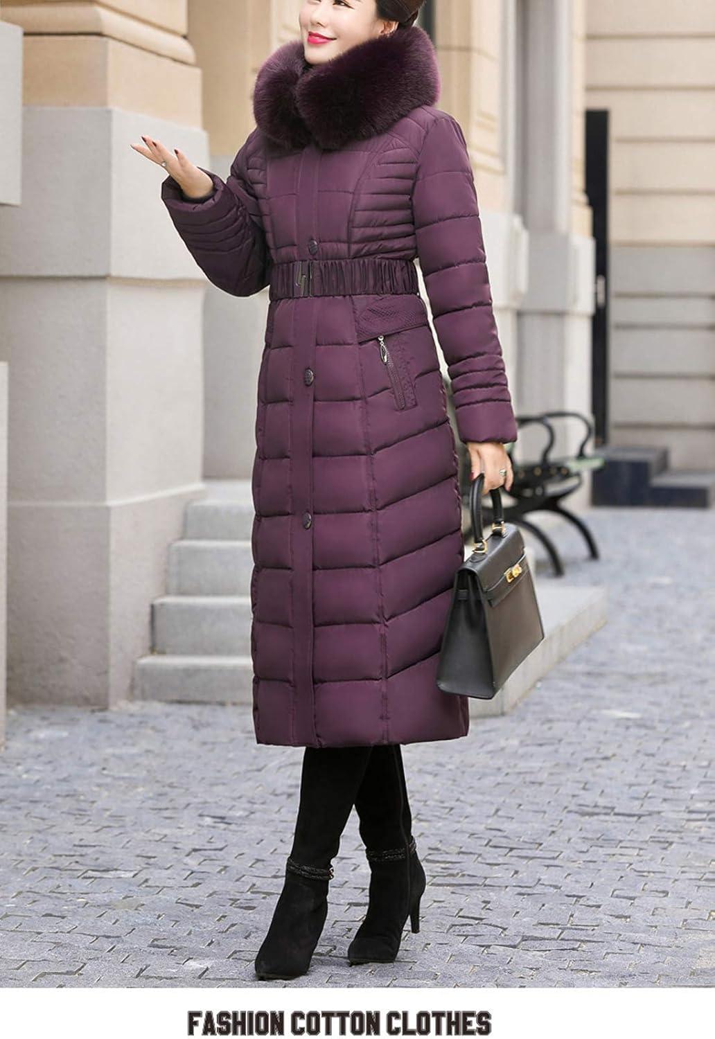 Flygo Women’s Winter Warm Faux Fur Hooded Down Coat Parka Outcoat Puffer Jacket(Purple)
