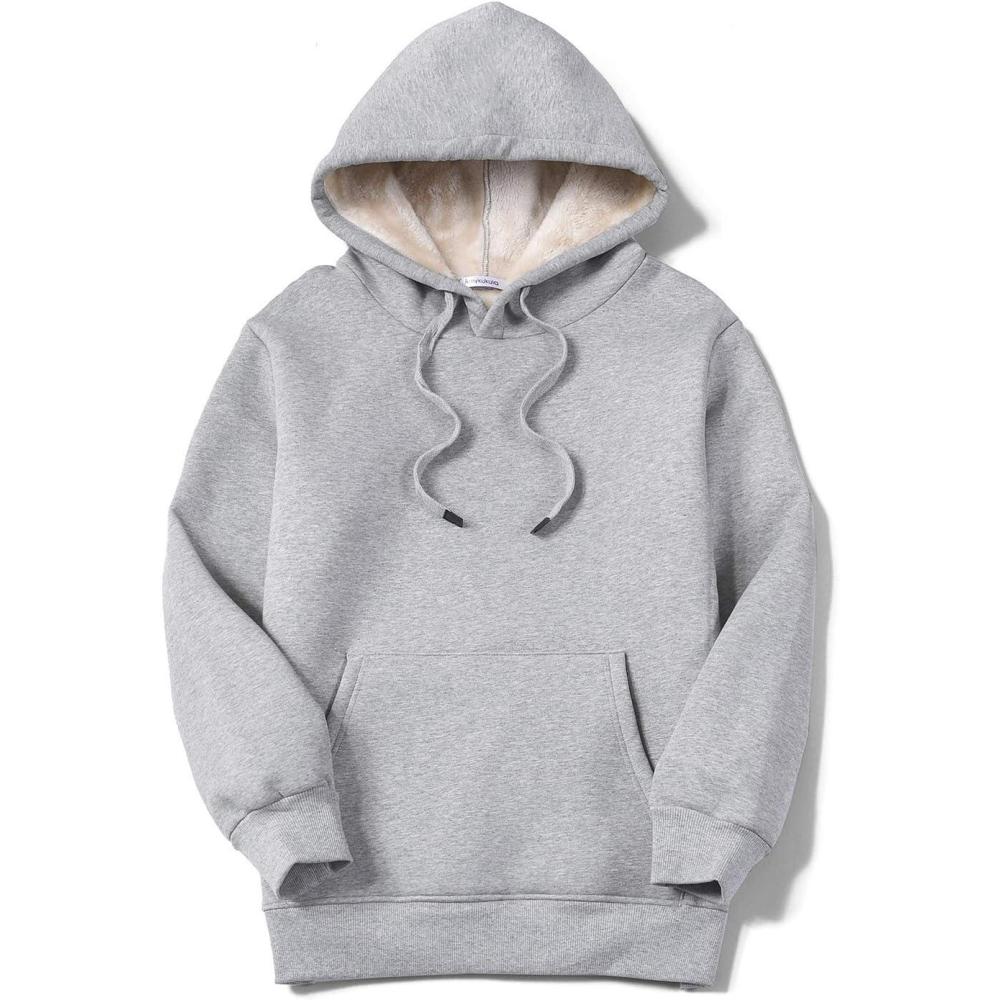 Flygo Women’s Winter Warm Fleece Hoodie Pullover Sherpa Lined Sweatshirt with Pockets(Light Grey)