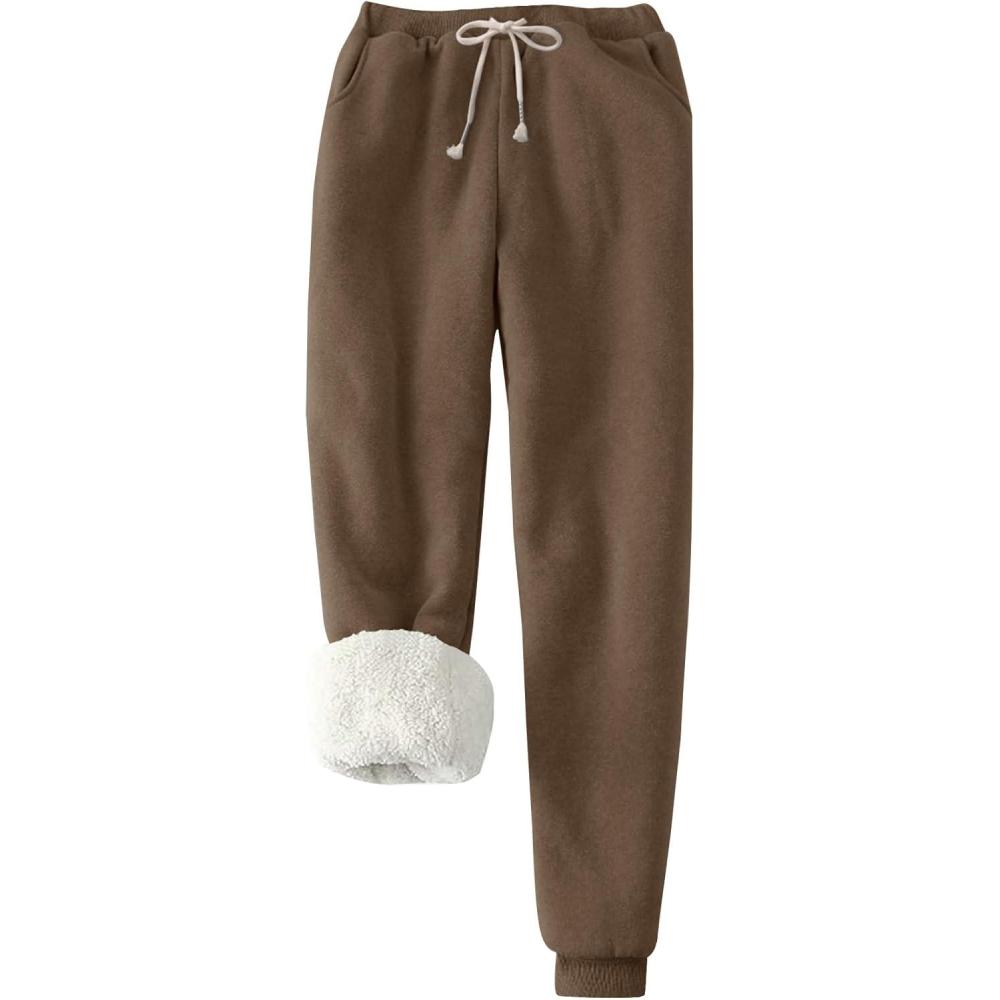 Flygo Women’s Winter Warm Fleece Joggers Pants Sherpa Lined Athletic Active Sweatpants(Brown)