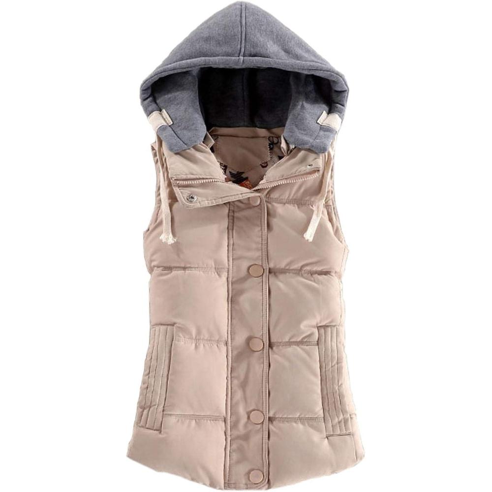 Flygo Women’s Winter Warm Hooded Quilted Puffer Down Vest Jacket(Beige)
