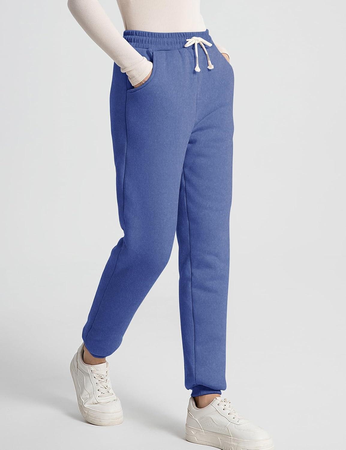 Flygo Women’s Winter Warm Jogging Pants Sherpa Lined Sweatpants Sports Active Sweatpants(Blue)