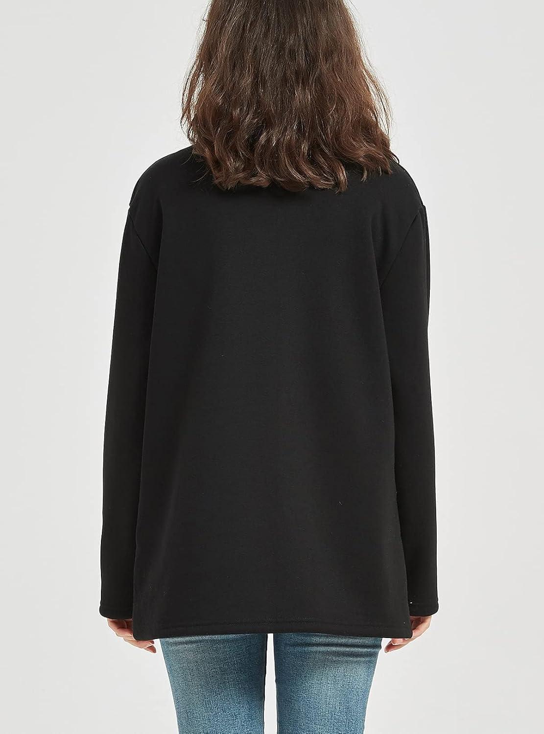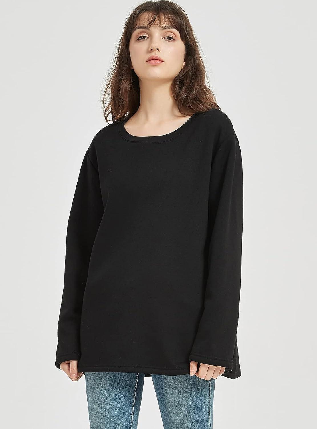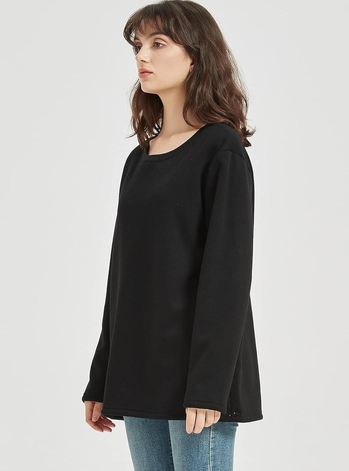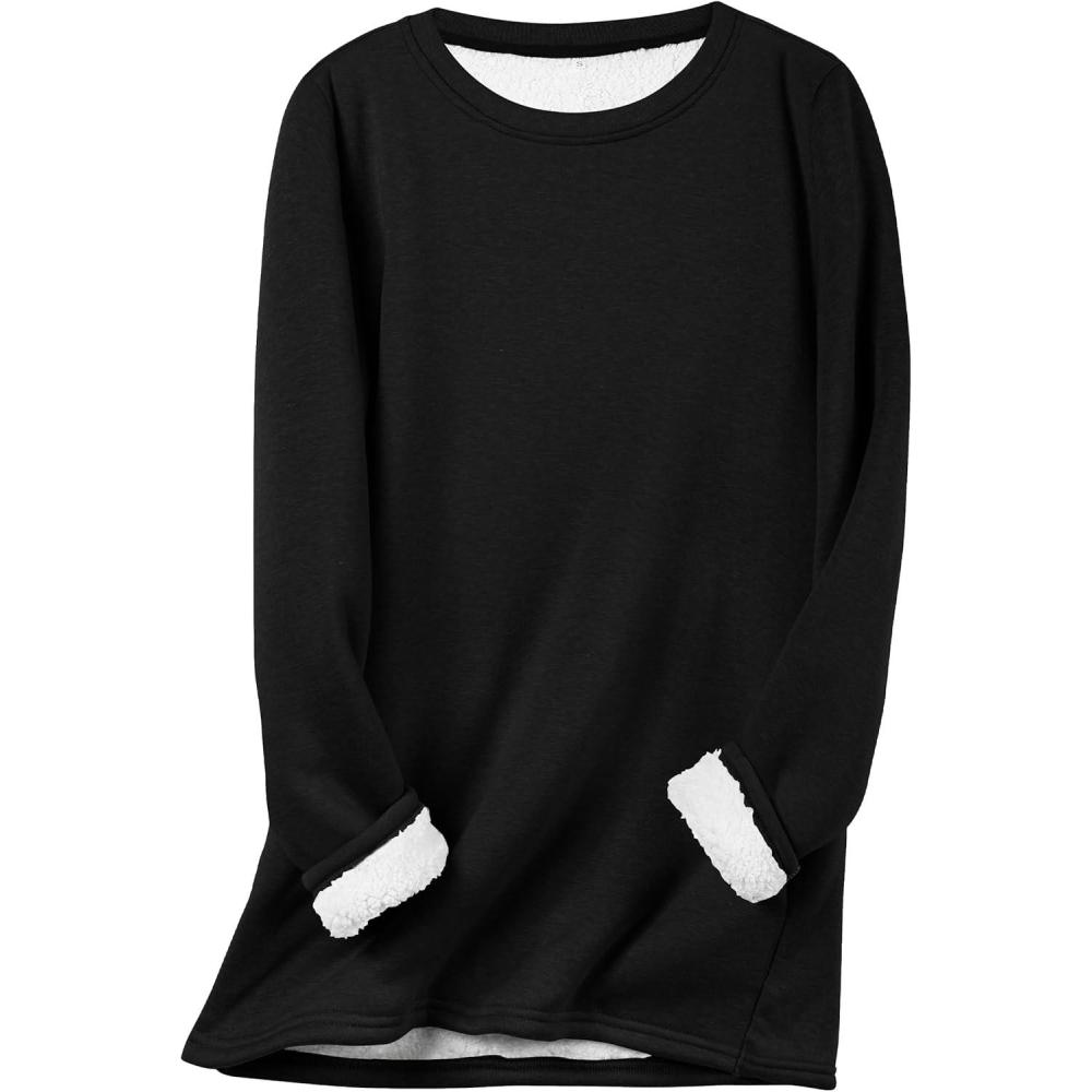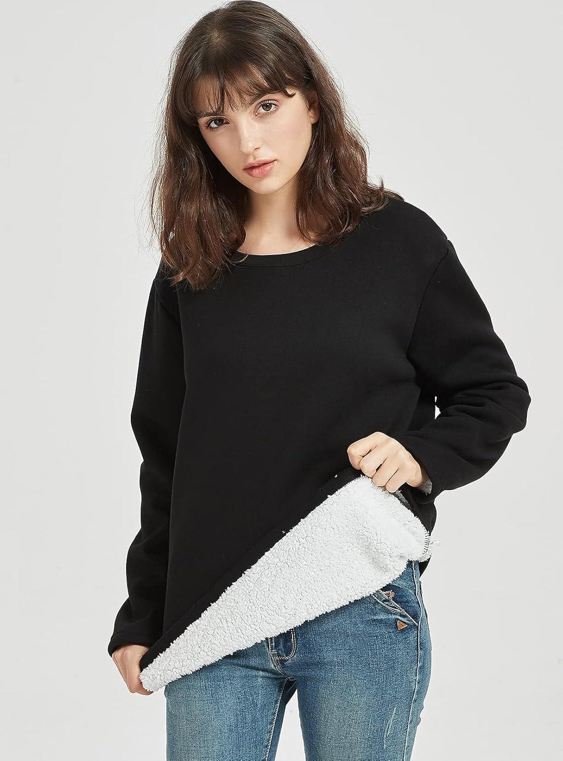 Flygo Women’s Winter Warm Sherpa Lined Fleece Crewneck Sweatshirt Pullover Loungewear Tunic Tops(Black)