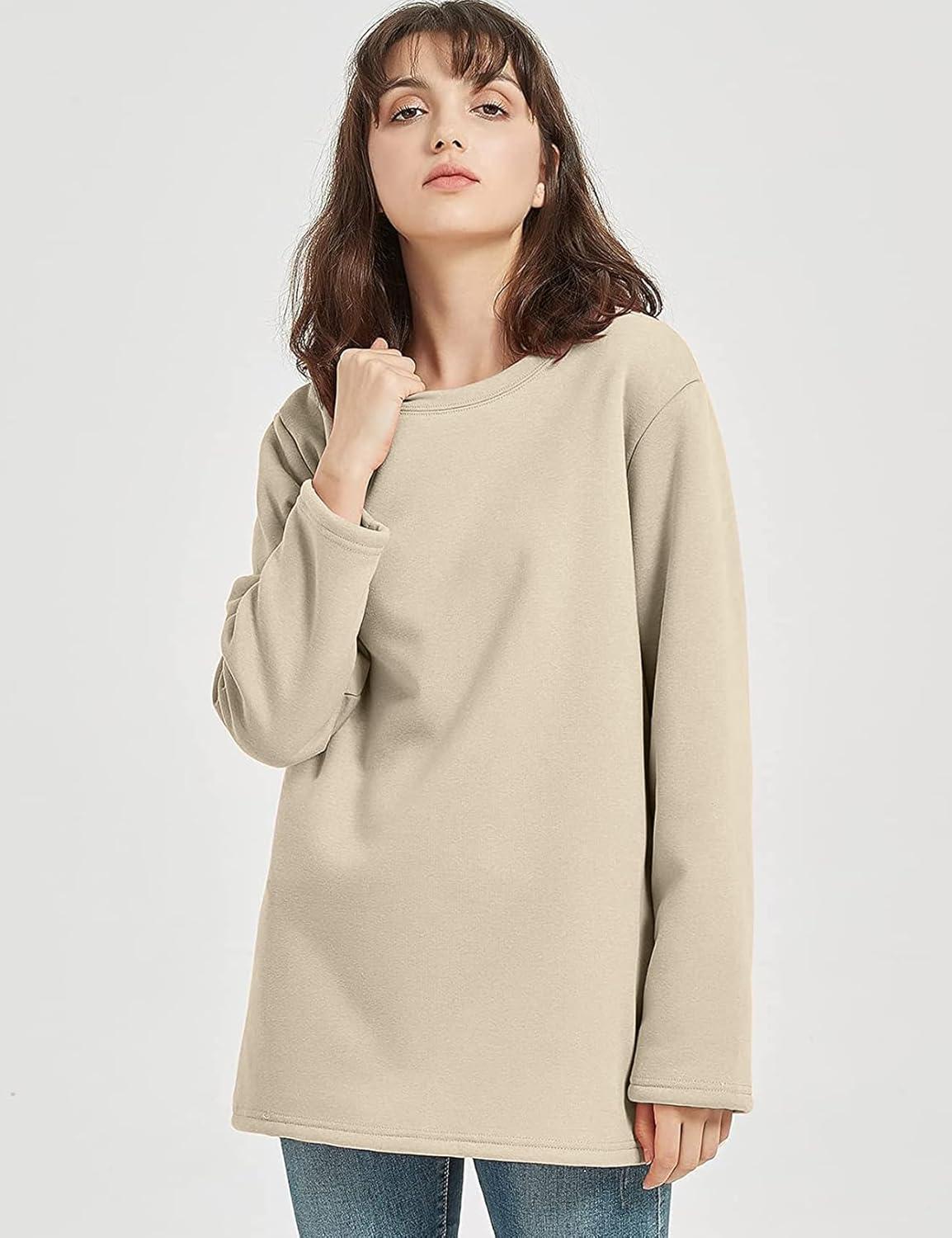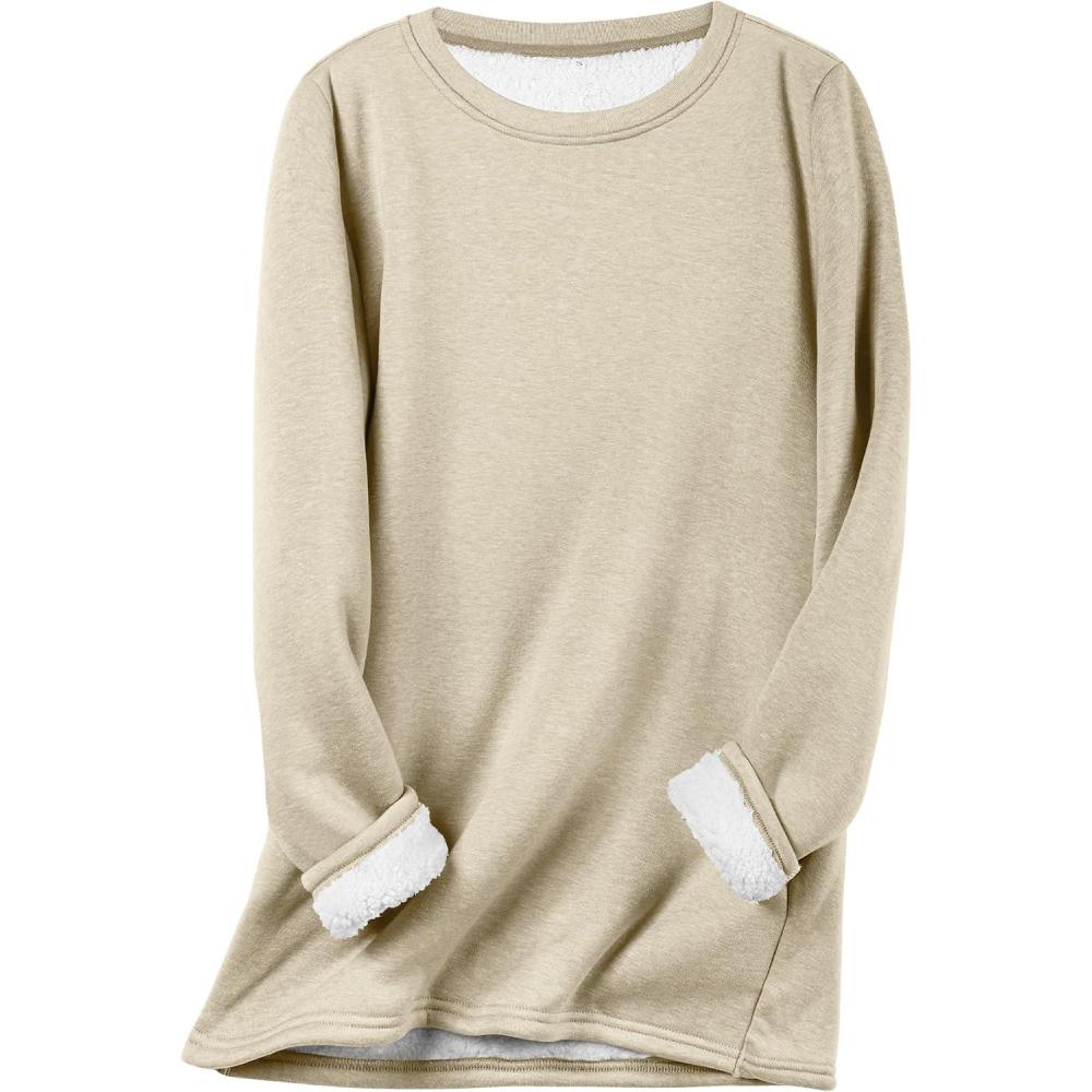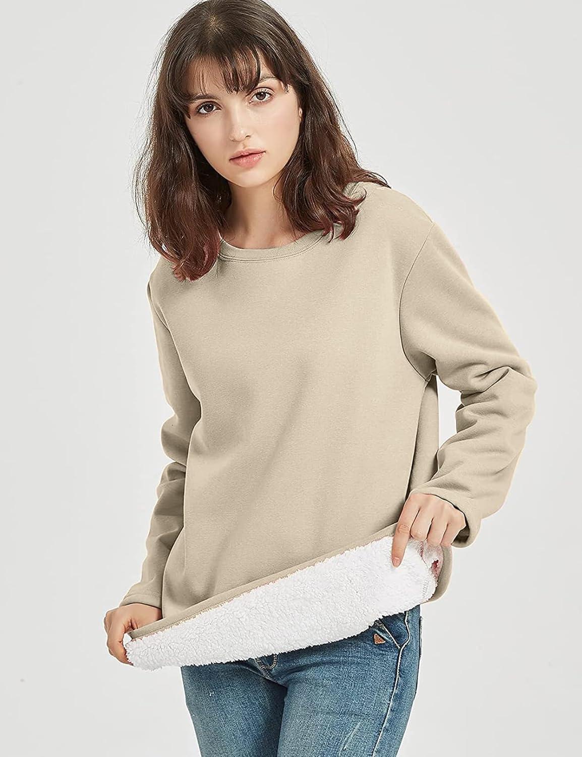 Flygo Women’s Winter Warm Sherpa Lined Fleece Crewneck Sweatshirt Pullover Loungewear Tunic Tops(Khaki)