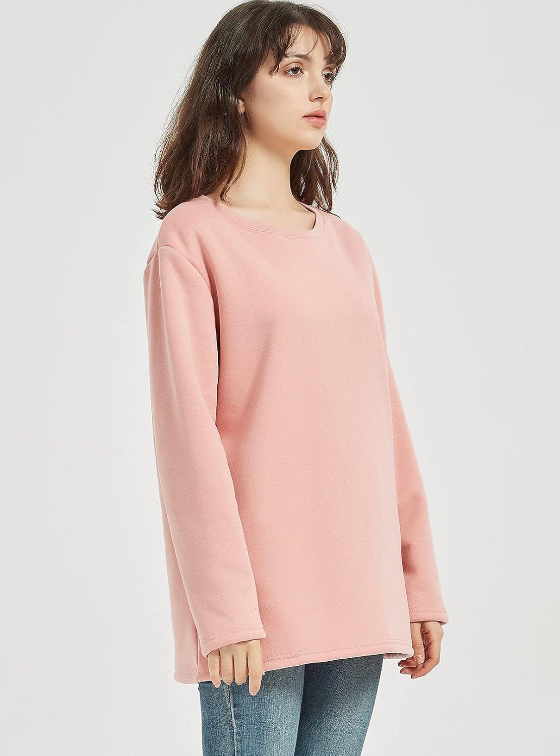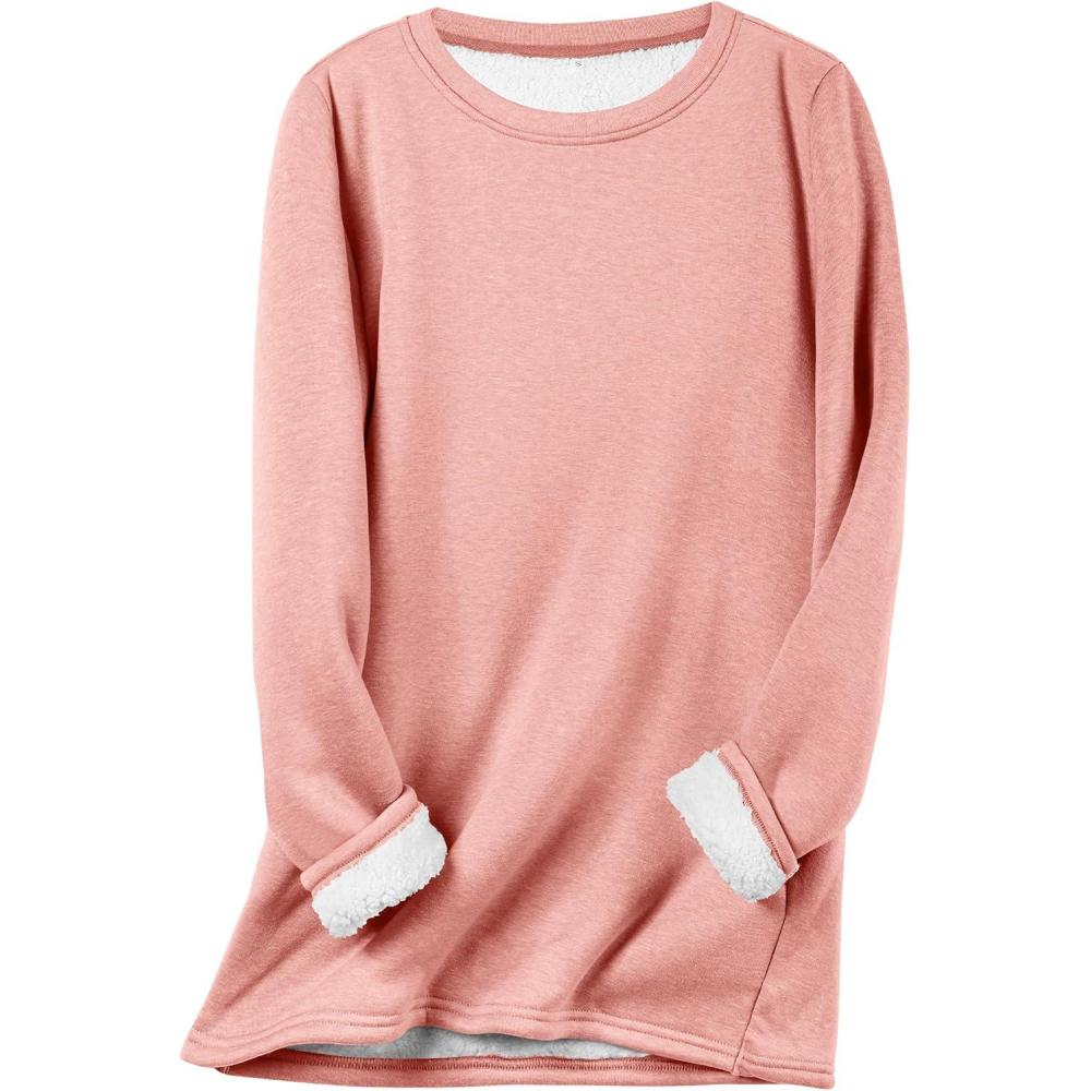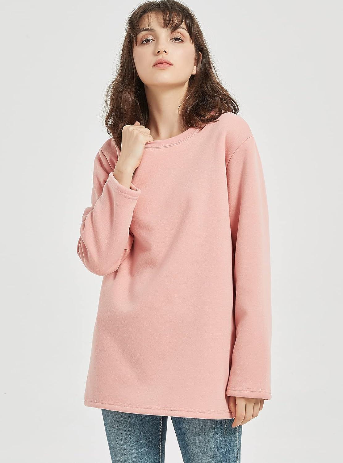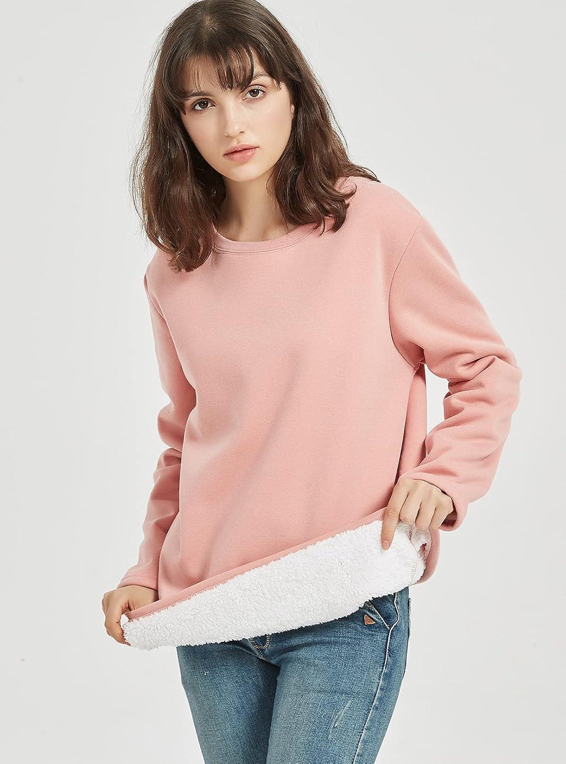 Flygo Women’s Winter Warm Sherpa Lined Fleece Crewneck Sweatshirt Pullover Loungewear Tunic Tops(Pink)