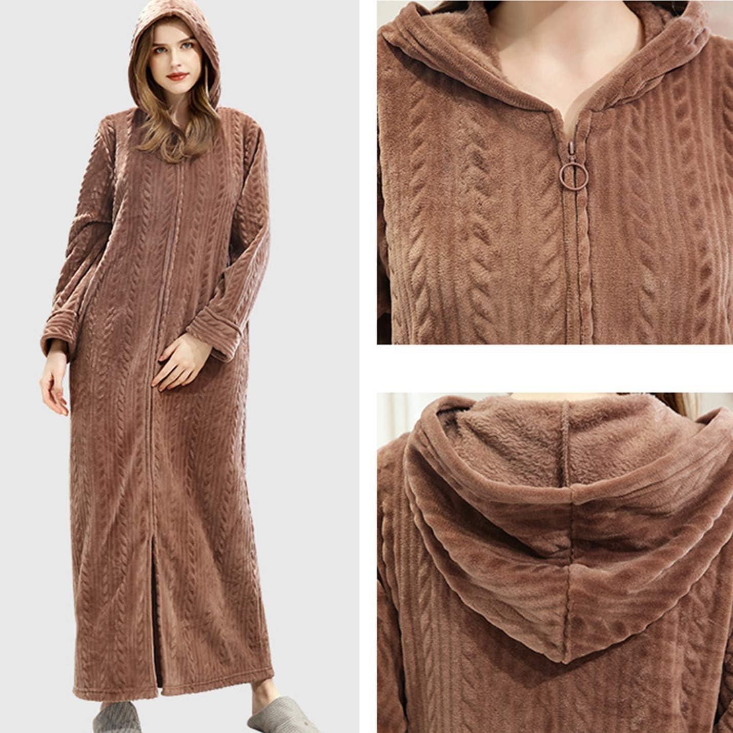 Flygo Women Flannel Pajamas Full Zipper Long Sleeve Hooded Long Robe Pajamas Sleepwear