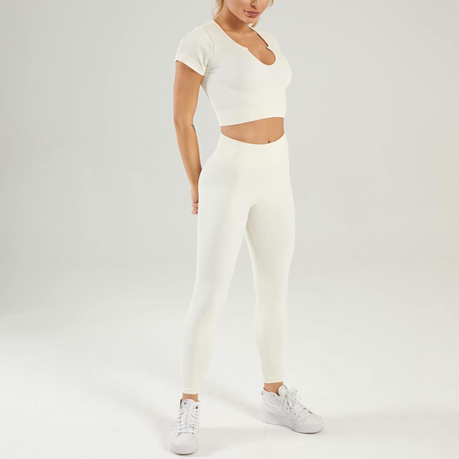 Package Includes: 1 piece short sleeve crop top+1 piece high waist leggings.