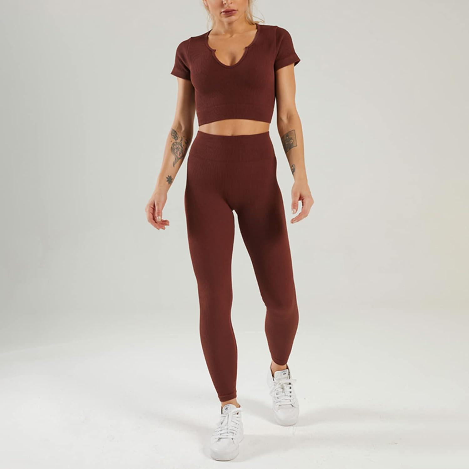 Package Includes: 1 piece short sleeve crop top+1 piece high waist leggings.