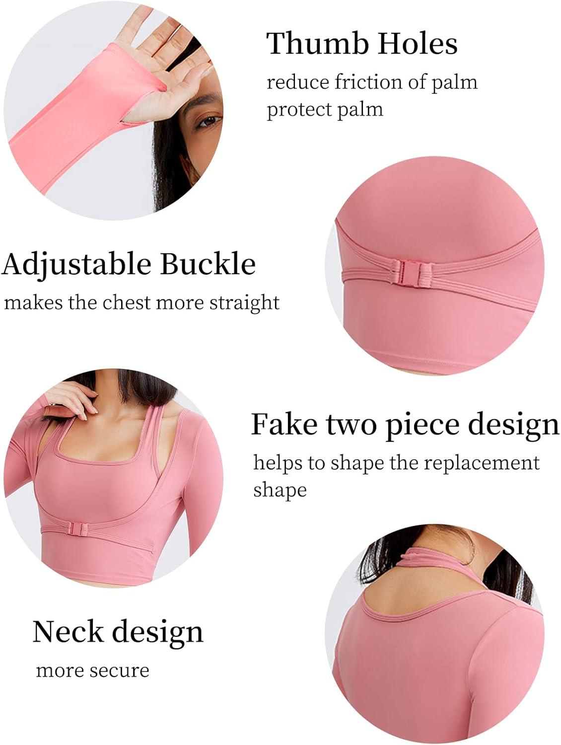 Flygo Yoga Shirts with Built in Bra Cutout Padded Crop Tops Long Sleeve Gym T Shirt for Women Workout